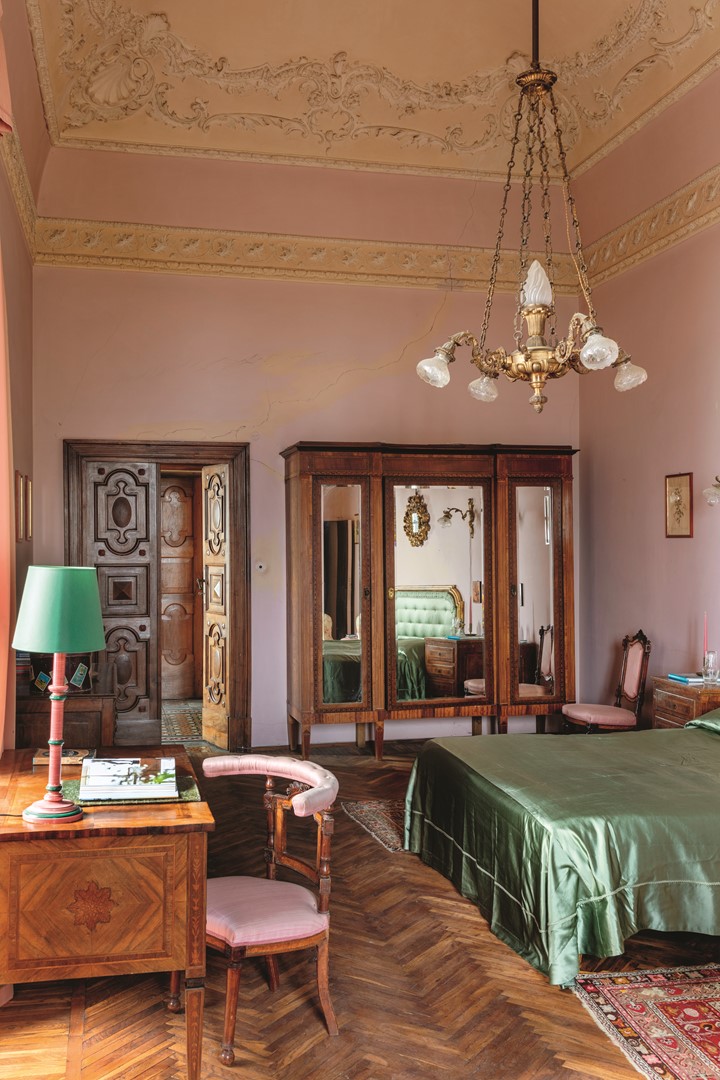 En dus was het elk jaar weer wachten op dat magische moment waarop de luiken en ramen werden opengegooid, de zon de verduisterde kamers verwarmde en de jongste telgen van de familie uit de verschillende streken weer bij elkaar kwamen. Vooral de zoektochten naar de vele frambozen in de omgeving, samen met zijn vele neefjes en nichtjes en bewapend met grote manden, toveren een wat melancholische glimlach op zijn gezicht. ‘Ook in mijn jeugd was het een echt familiehuis, maar indertijd was Castello Tabiano niet het hele jaar bewoond. Mijn opa moest in de jaren zestig voor zijn werk naar Rome verhuizen en daardoor stond het kasteel de herfst- en wintermaanden leeg. Nu is het constant betrokken en die voortdurende aanwezigheid voel je. Ook omdat we sinds 2016 alles, inclusief de tuinen, intensief aan het restaureren zijn en het kasteel door middel van events en tours weer op de kaart willen zetten.’ Lachend, na een korte pauze: ‘Want laten we eerlijk zijn: onze familie vormt slechts vijftien procent van het complete verhaal van dit kasteel, dus als we überhaupt een vermelding willen in de geschiedenis van Castello Tabiano zullen we hier echt de handen uit de mouwen moeten steken.’