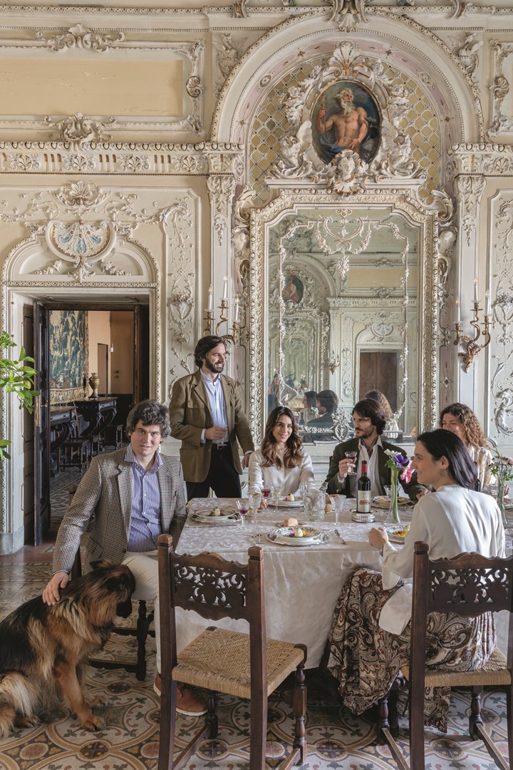Doel van de indrukwekkende residentie was, aldus Alessandro, het opdoen van goede contacten in de hogere kringen. ‘Net als nu was het geven van diners — met de juiste gasten — in die tijd dé manier om door te dringen tot de beau monde. Je huis functioneerde daarbij als visitekaartje.’ Ander belangrijk onderdeel van het socialiseren was de jacht. ‘Het functioneerde een beetje zoals het golfen nu, in die zin dat het een activiteit was waarbij het sociabele gedeelte, het maken van nieuwe (zakelijke) contacten, belangrijk was.’ Hoe belangrijk blijkt uit het feit dat de bovenste etage van het kasteel, een slordige achthonderd vierkante meter, volledig bestaat uit de stanze dei cacciatori (kamers voor de jagers), vertrekken die in de nabije toekomst verbouwd zullen worden tot twaalf unieke hotelsuites.