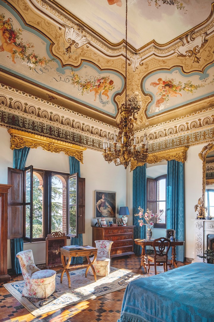 En het bleef niet bij kopen alleen. Ze besloten het kasteel weer bewoonbaar te maken en begonnen aan een enorme verbouwing die decennialang zou duren. Met hulp van de beste vakmannen uit de omgeving wisten ze het vergane bolwerk beetje voor beetje om te vormen tot een elegante residentie: ramen werden groter gemaakt, middeleeuwse muren gerestaureerd, de kelders werden verbouwd tot kantines voor de productie van wijn en Parmezaanse kaas, en het interieur werd verrijkt met prachtig stucwerk en fresco’s. Er herrees een aaneenschakeling van majestueuze salons, studeerkamers en ontelbare slaapvertrekken die Rosa liefdevol inrichtte met antieke meubels uit Engeland. Uiteindelijk was het resultaat een typische negentiende-eeuwse patriciërswoning in een structuur die uit het jaar duizend stamt... zonder meer een bijzondere combinatie.’