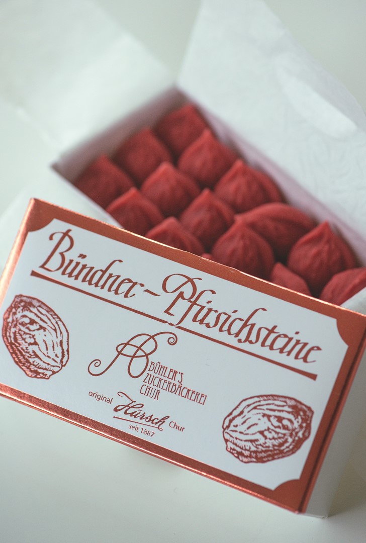 Chur kent meer lokaal lekkers. Bij Bühler’s Zuckerbäckerei maakt eigenaar Arthur Bühler sinds 1887 vers brood, koeken, pralines en gebak. Het huis is vooral beroemd om de Churer Pfirsichsteine – marsepeinen perzikpitten, vervaardigd met oude metalen mallen. Ze smaken uitstekend bij een glaasje Churer Röteli, een donkerrode likeur van brandewijn, kirsch, lokale kersen en specerijen met kaneel.