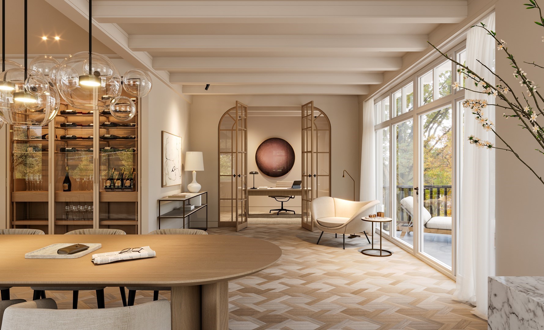 Dit project in de Gooi- en Vechtstreek is werkelijk bijzonder stijlvol. Het gaat om zeer exclusieve, strak vormgegeven high-end appartementen en penthouses. De woonoppervlaktes variëren van 226 m2 tot 305 m2, met respectievelijke buitenruimtes van 77 m2 en 97 m2 op eigen grond. Elk appartement beschikt over twee eigen parkeerplaatsen en een ruime berging en er is de mogelijkheid voor toekomstige bewoners een geheel eigen draai te geven aan het interieur.
