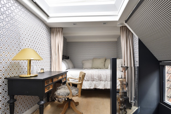 Het bijzondere aan de ruimte is de hoogte van meer dan vier meter en de grote glazen dakramen in het plafond