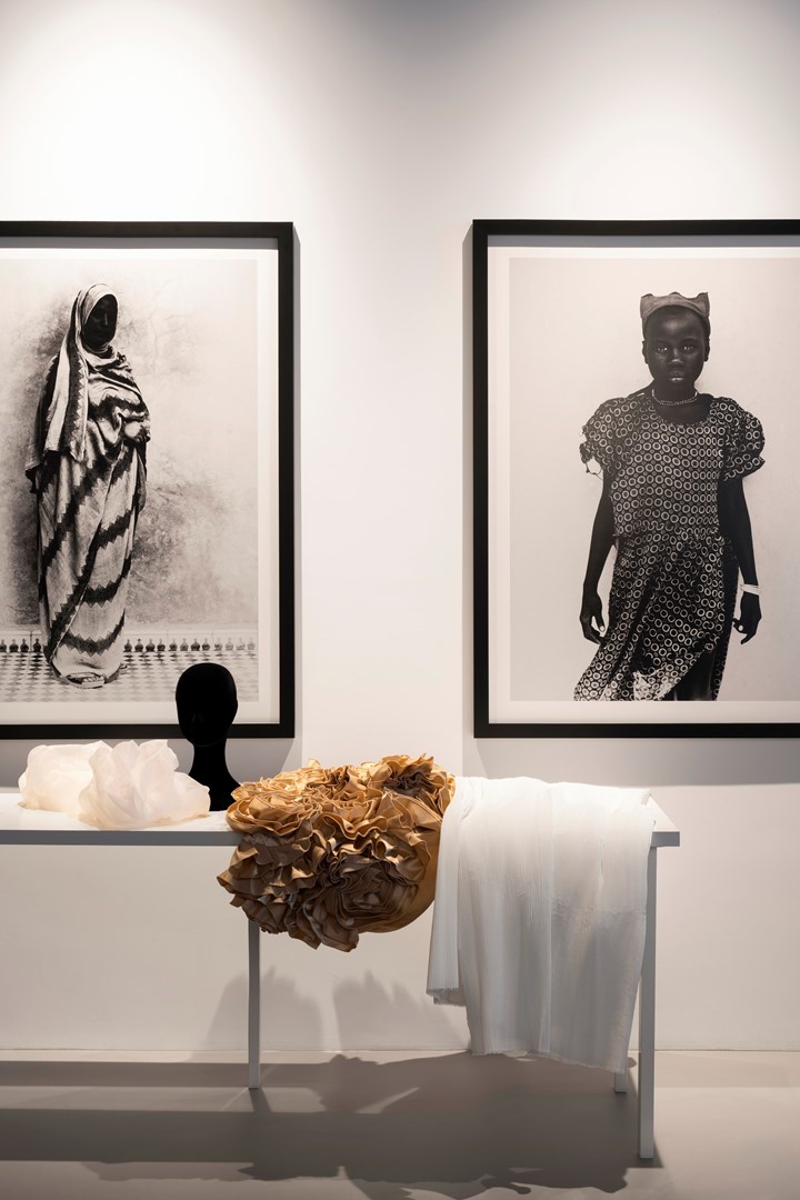 Zijn werk, dat tussen dat van andere fotografen aan de wanden hangt, kenmerkt zich door scherpe contrasten. De tegenstelling tussen de donkere huid van een model en de melkwitte stof die om haar bovenlichaam is gewikkeld. Of tussen het vale woestijnzand waar in de onscherpte een donkere kudde kamelen voorbijtrekt.