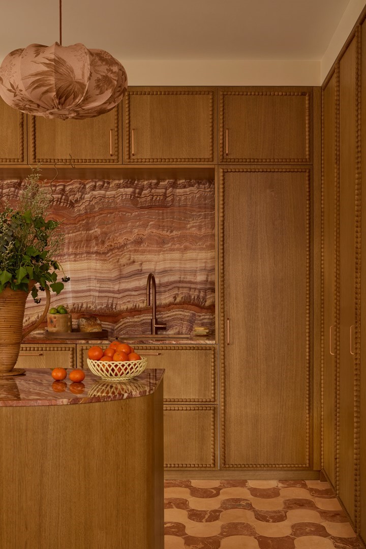 Het interieur weerspiegelt niet alleen haar esthetiek, maar ook haar filosofie: ‘Een woning moet het verhaal vertellen van de mensen die er wonen. Ik vraag mijn klanten altijd naar hun herinneringen, favoriete steden, films en kleuren uit hun jeugd’, zegt ze. ‘Pas dan kunnen we iets maken dat écht van hen is.’ Voor haar eigen huis wilde ze Franse verfijning combineren met de warme romantiek van Byzantijnse interieurs en Andalusische accenten.