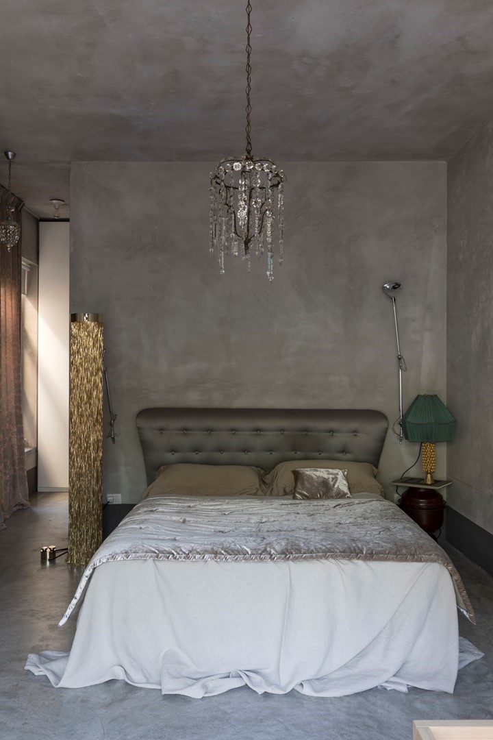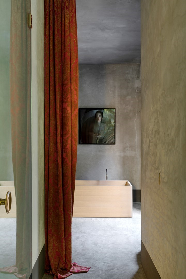 Op vijf minuten lopen van het huis bevindt zich de grote studio en winkel van Iosselliani. Een nieuw gebouw, ontworpen door de bevriende architecten Adriano Pingaro en Susanna Gargiulo. Ook hier is gewerkt met strakke lijnen, veel glas en beton. Het interieur, dat werd toevertrouwd aan Michele Peretto, verzacht die industriële uitstraling dankzij de houten lambrisering en eikenhouten vloer. In het atelier werkt Paolucci aan de nieuwe sieradencollectie. Kenmerkend is het gebruik van vintage juwelen die zijn bewerkt tot gewaagde statementkettingen, armbanden en gestapelde ringen. ‘Mijn moeder was een haute couture naaister, ze werkte voor Roberto Capucci en Valentino’, vertelt ze.