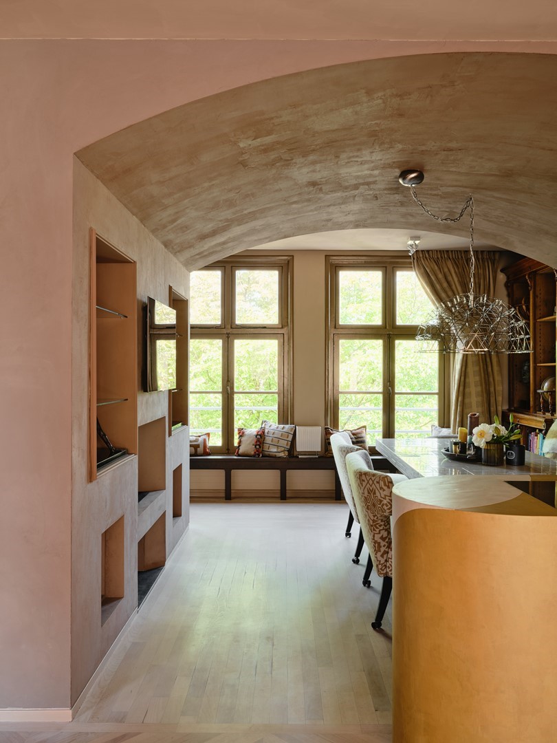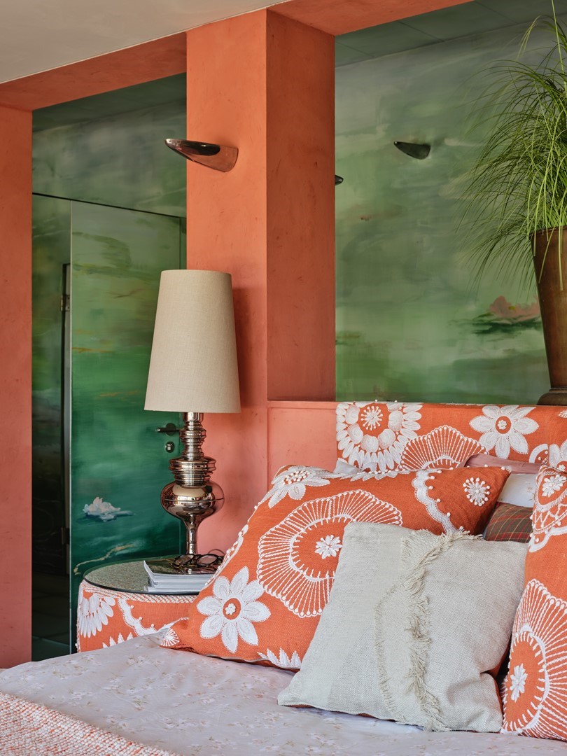 Kleuren en aandacht voor persoonlijke details vormen de rode draad in het werk van Madelon. De eigenaars van dit appartement hebben een uitgebreide verzameling kunst en antiek. Die vormde dan ook het uitgangspunt voor het kleurgebruik in het appartement. Madelon: ‘Ik werk al jaren met Belgische schilders die prachtig vakwerk afleveren. Samen hebben we bijvoorbeeld het patroon op de keukenkastjes en de muurschildering in de badkamer - geïnspireerd op een kunstwerk van Monet - ontworpen. Ook in een van de slaapkamers hebben we een muurschildering aangebracht, gebaseerd op het patroon van een kussen op het bed. Zo is een interieur ontstaan dat warmte en persoonlijkheid ademt, precies wat de bewoners voor ogen hadden.’ mosinteriors.nl