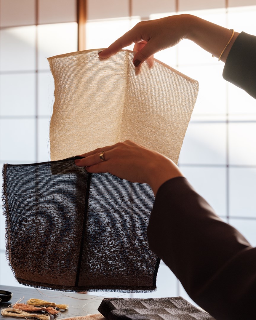 Bijvoorbeeld bij de KA sofa van Time & Style die is ontworpen door Kengo Kuma. Ontstaan uit een Japanse woordspeling. En een samenwerking van Mae Engelgeer en het Japanse textielbedrijf HONSOO.