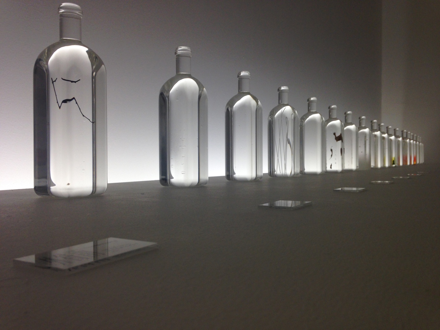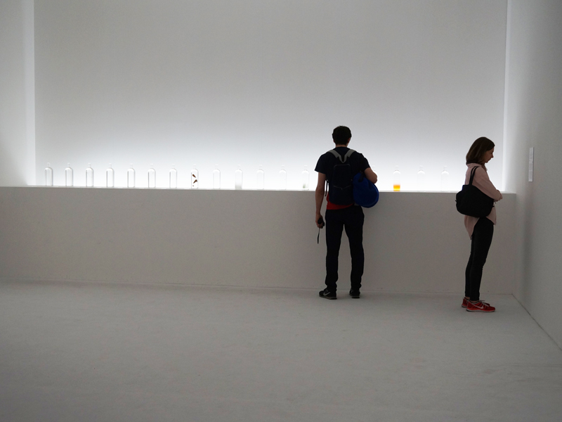 Bezoekers van Milan Design Week bekijken de Raindrops in a bottle van Nendo