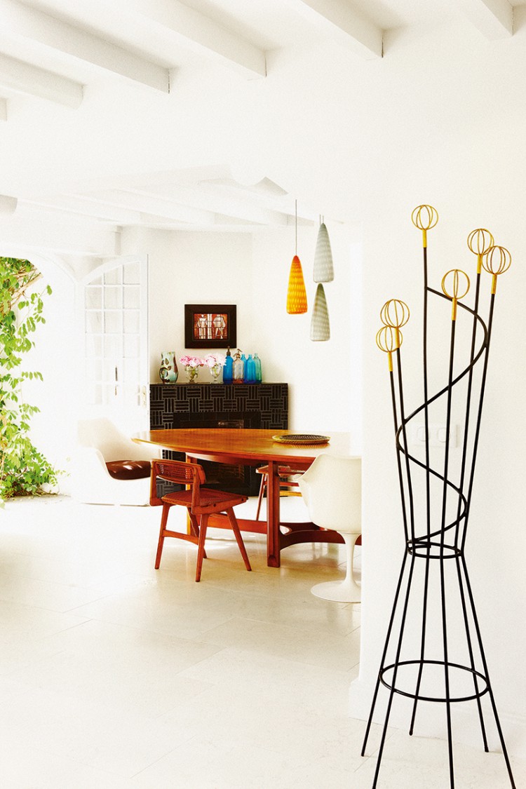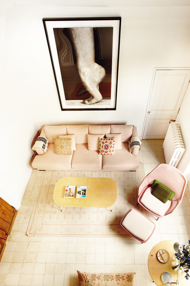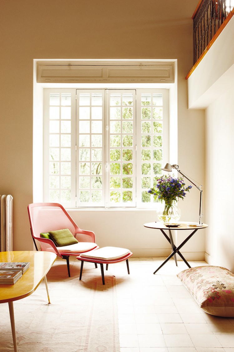 Decorator Susana Beltran heeft duidelijk oog voor detail. Haar Franse huis bevat karakteristieke vormen en 20e eeuwse details, die bewust behouden zijn. Vrijwel alle meubels en accessoires zijn vondsten van vlooienmarkten en antiekwinkels die Beltran door de jaren heen verzamelde. Alleen de bank, gemaakt door een lokale stoffeerder, en de roze sofa zijn nieuw. Toch oogt het geheel fris en modern.