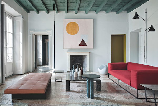 Gabriele: 'Onze showroom bevindt zich sinds 2009 in de Brera-buurt, in het pand waar ook Boffi en de architecten van Dimore Studio gevestigd zijn. Mijn vader had een mooie showroom achter theater La Scala, maar ik voelde de behoefte te verhuizen naar het nabijgelegen Brera, omdat dat nu dé plek is op het gebied van design. Niet voor niets is het de buurt waar zich de kunstacademie van Milaan bevindt.' Op een dag werd hij door de makelaar gebeld met het nieuws dat er een appartementje was vrijgekomen aan de Via Solferino 10, het kloppende hart van Brera. Bij bezichtiging bleek het klein te zijn, met lage plafonds en Gabriele had al laten weten niet geïnteresseerd te zijn toen Piero Lissoni hem op een ander idee bracht.