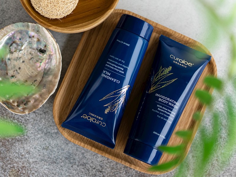 Het mooiste geschenk van moeder natuur? Aloë Vera. Dat is dan ook het product waar Curaloe bekend om staat. De Curaloe Organic Skin- en Bodycare wordt geproduceerd met organisch geteelde Aloë Vera. De plant produceert een gel die de huid diep kan voeden Dit zorgt ervoor dat het gifstoffen uit je cellen verwijderd en voedingsstoffen worden opgenomen.