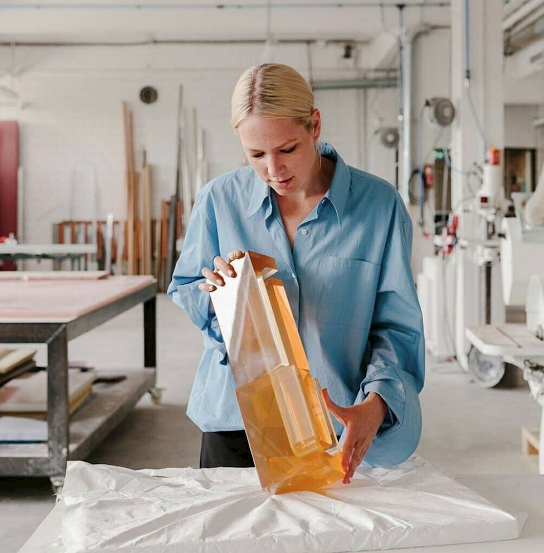 De Nederlandse ontwerper Sabine Marcelis staat bekend om haar werk waarin ze met verschillende materialen, installaties en objecten bijzondere ontwerpen maakt, bestaande uit bijvoorbeeld glas, licht en resin. Met haar designstudio in Rotterdam is ze altijd op zoek naar magische momenten in productieprocessen om onverwachte ervaringen te creëren.
