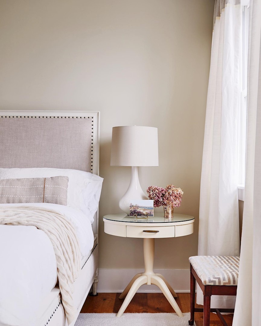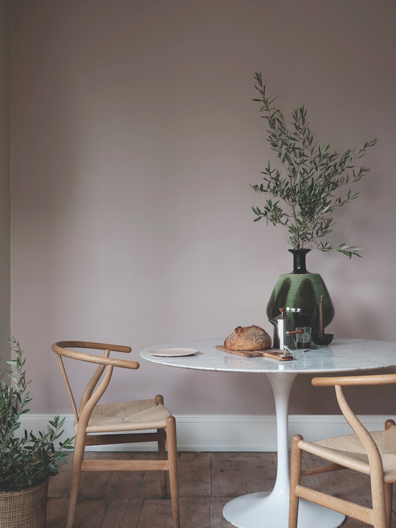 Liever ingetogen en charmant dan fel en opvallend roze? Ga dan voor de kleur Pink Drab (foto rechts). Charlotte Cosby legt uit: "Pink Drab heeft niets van dat suikerachtige dat vaak met roze wordt geassocieerd. Het lichte vleugje zwart maakt hem zachter, zodat hij perfect in een rustgevende, kalmerende ruimte past."