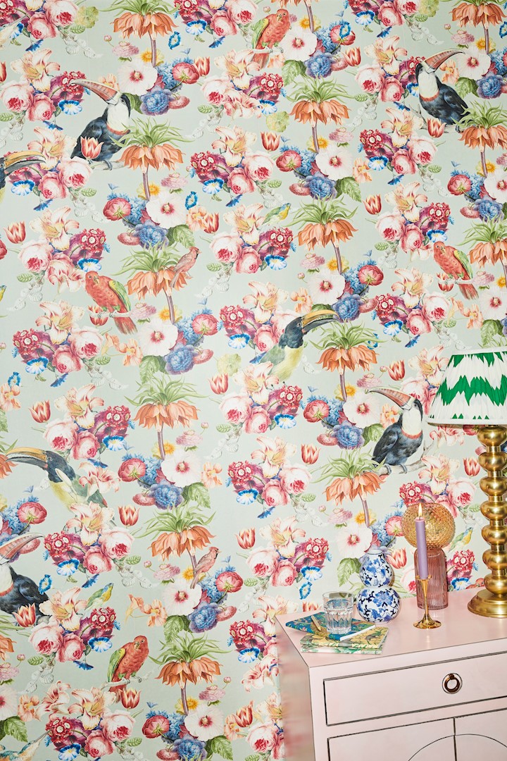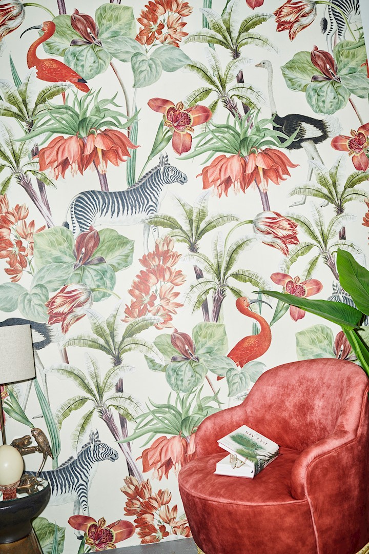 Alle exotische dieren en weelderige bloemen die te zien zijn in de speelse designs hebben een uniek verhaal. Het verhaal over de herkomst van de historische elementen wordt vermeld bij elk behang en op de website. Naast behang bevat de collectie ook wenskaarten en notitieboekjes.