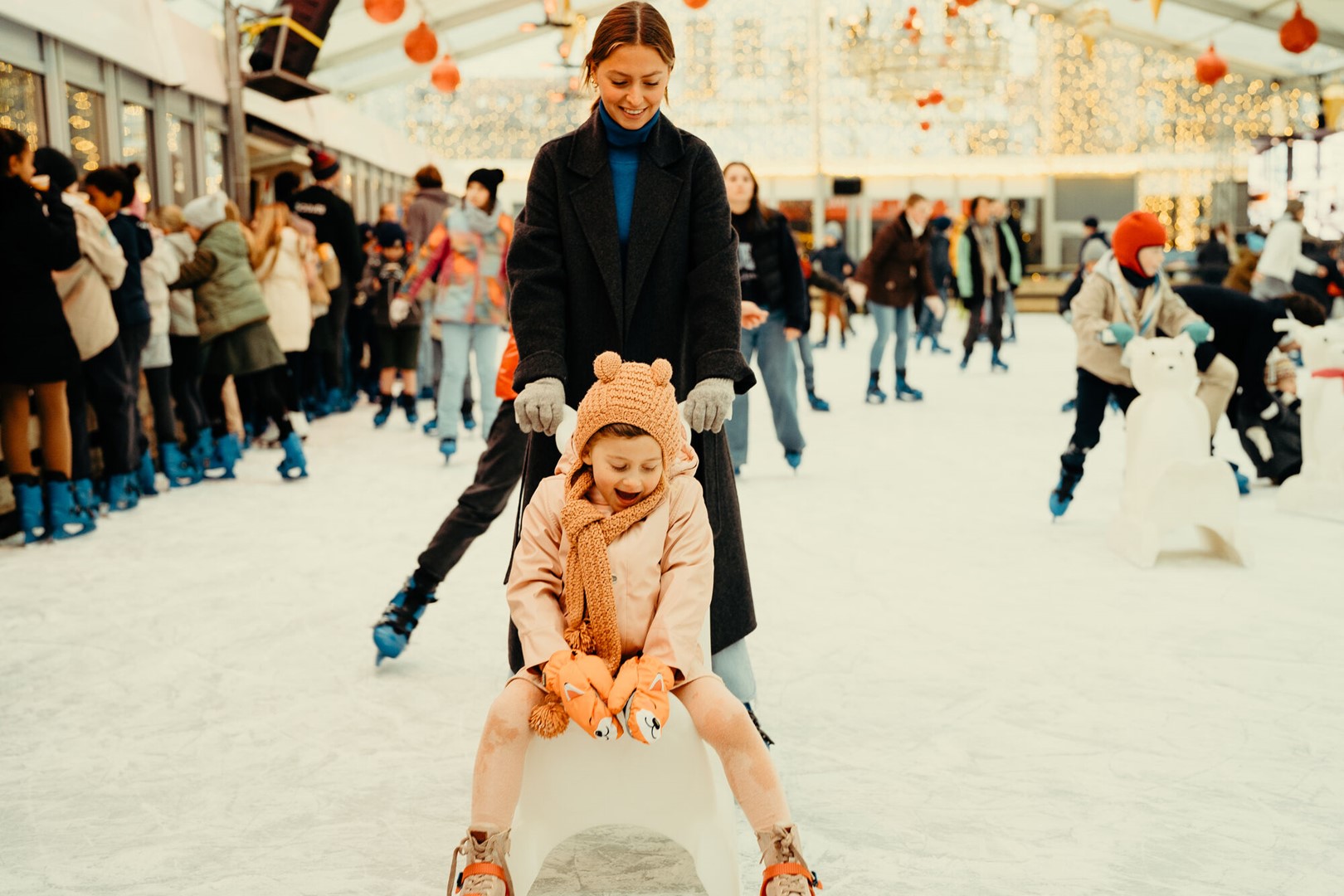 Op het Alfred Verweeplein staat opnieuw de overdekte ijspiste, het sociale middelpunt van Knokke. Of je nu sierlijk over het ijs glijdt of vooral probeert overeind te blijven: het is een heerlijke plek om in de winterstemming te komen. Kinderdisco’s en DJ-sessies maken het extra leuk. De winkelstraten worden intussen tot leven gewekt door vier straatspektakels met muziek, licht en dans.
