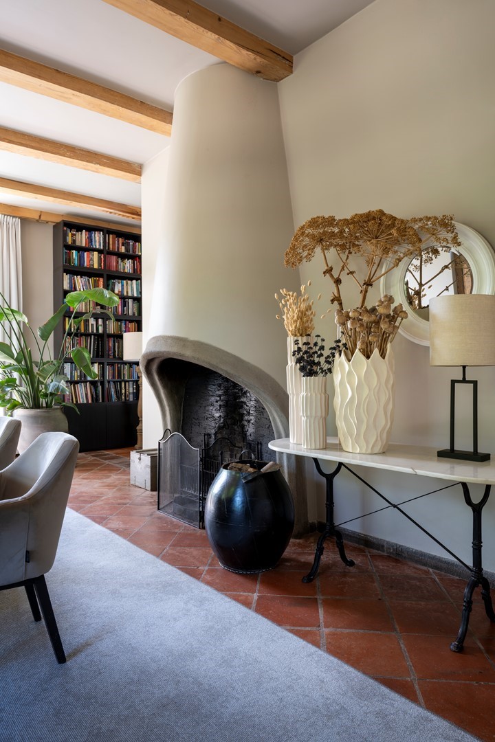 Ook zijn we druk bezig met verduurzaming. In het begin hadden we voor ons koetshuis wilde plannen, zoals het verplaatsen van een trap. Toen we er eenmaal woonden, kwamen we daarop terug. Wel kwam er onder meer een moderne keuken, fris stucwerk, mooi hang- en sluitwerk en gingen de verlaagde plafonds eruit. Met respect voor de geschiedenis voegen wij nu een moderne laag toe. Over het verbouwen van monumenten geef ik cursussen aan interieurprofessionals. Met De Interieur Club maakte ik ook een podcastserie.’