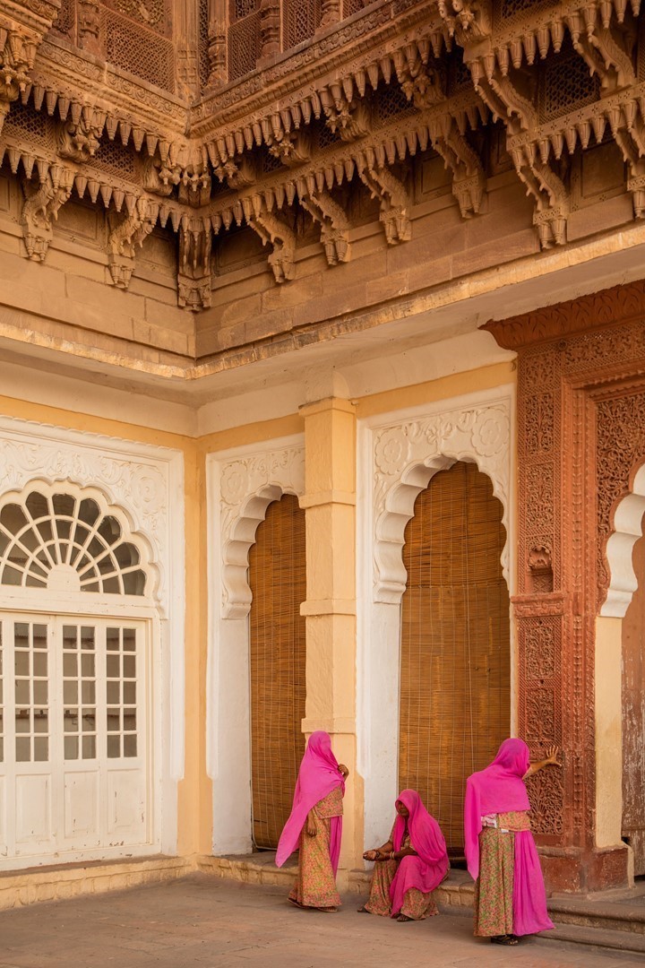 De volgende dag zijn we uitgenodigd om bij hem te lunchen in onze witte gewaden, en vanwege het Holi Festival worden we uitgebreid met roze verfpoeders bedekt voordat we aan tafel gaan. Na afloop van de lunch rijden we met vijftien jeeps Jodhpur in, om vanaf de Engelse klokkentoren door de nauwe straatjes te lopen naar een bescheiden plein, alwaar het werpen van de kleurpoeders begint. De plaatselijke genodigden kijken vanaf een kleine tribune toe hoe wij hun feestje vieren.