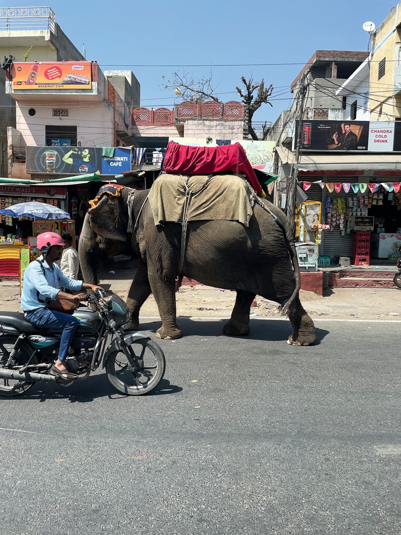 De volgende dag gaan we per auto naar Jaipur, een reis van een uur of vier, waar we zes uur over doen door diverse opstoppingen. Een omgeslagen vrachtwagen geeft het verkeer vrij spel om langs iedereen te rijden, in alle richtingen.