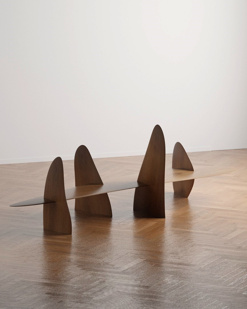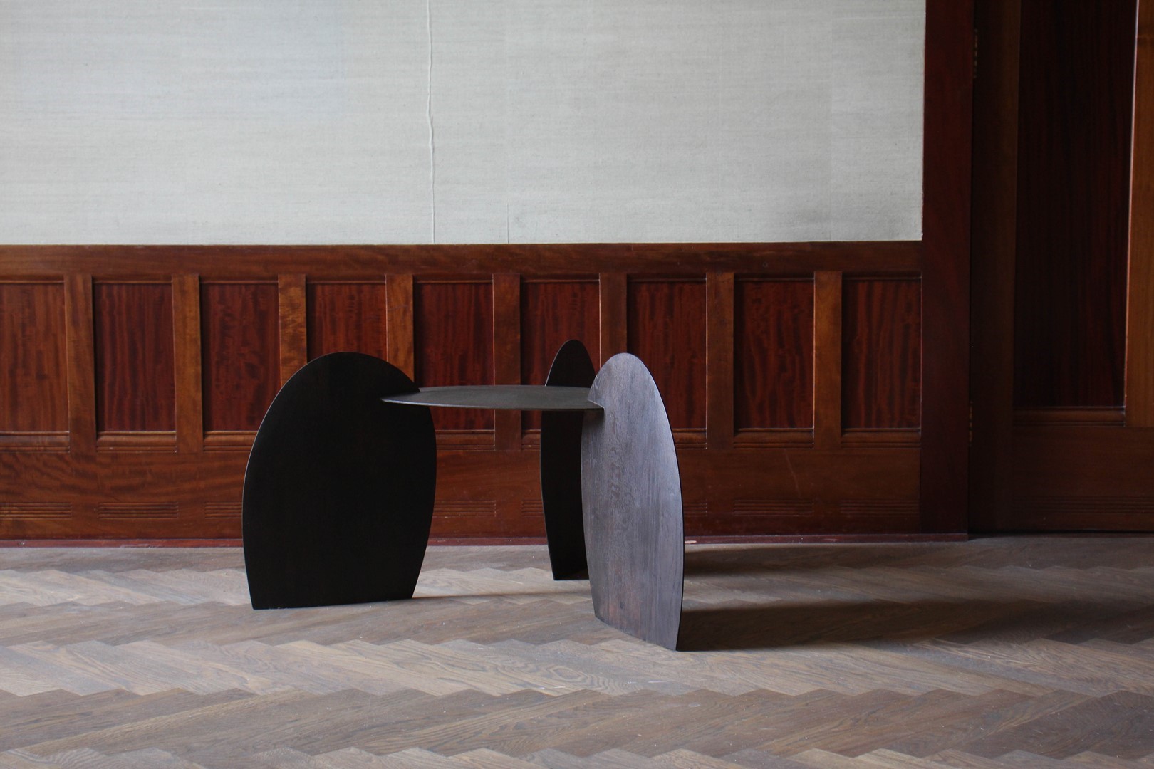 AK: ‘Een beetje bizar is het wel, maar ik heb vrienden in de designwereld en bij hen heb ik de kunst een beetje kunnen afkijken. Toen ik mijn eerste ideeën uitgewerkt had, heb ik een portfolio gemaakt en aan verschillende galeries in binnen- en buitenland gevraagd wat ze ervan vonden. Tot mijn verbazing waren de reacties heel positief. Uiteindelijk heb ik gekozen voor de galerie met wie ik de beste klik had, en dat was Kolkhoze in Parijs. Daarna heb ik me weer teruggetrokken in mijn werkplaats om de collectie af te maken. Die bestaat nu uit vijf stukken: een grote tafel, een desk, een bankje, een console en een grote bank waar vier tot vijf personen op kunnen zitten.’
