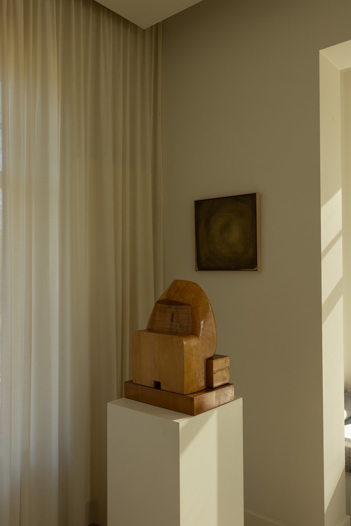 Een ander sprekend voorbeeld is The Beech House, een negentiende-eeuwse villa in een Belgisch dorp vlak bij Antwerpen. De woning, omringd door oude beuken, kreeg een nieuw leven. “We zijn dol op de C10 Coffee Table van Nerone e Patuzzi – Gruppo NP2,” vertelt het duo. “We combineerden hem met hedendaagse ontwerpers zoals Mik Bakker’s Flair Chair, een schilderij van Atelier de Rijk en keramiek en sculpturen van Willem van Hoof.” Het resultaat? Veel contrast, statig en speels tegelijk. creativestudiomees.com