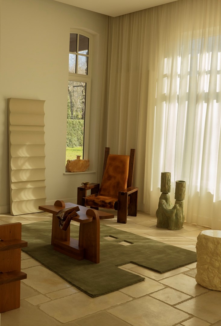 Studio MEES werkt veel samen met gevestigde namen, jonge ontwerpers en vintage galeries. Sculpturale meubels zetten ze neer naast zachte stoffen, aardse tinten naast onverwachte materialen. Zo ontstaan interieurs vol contrast.