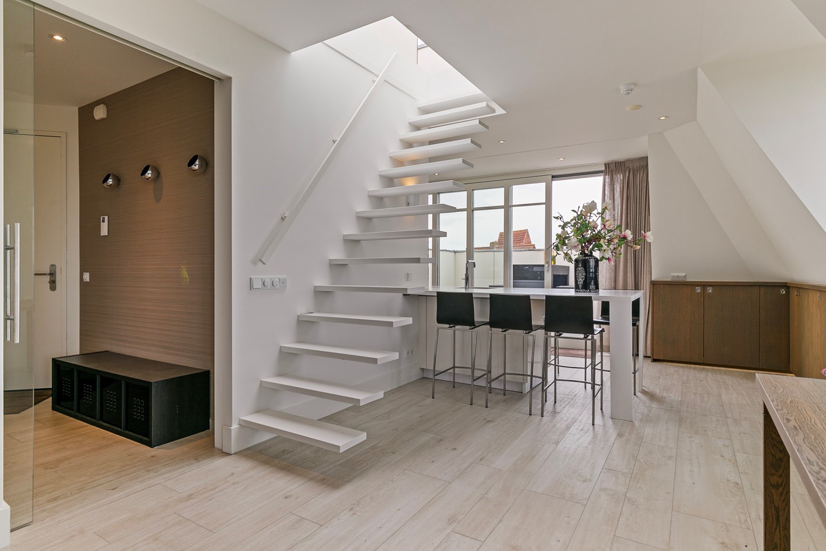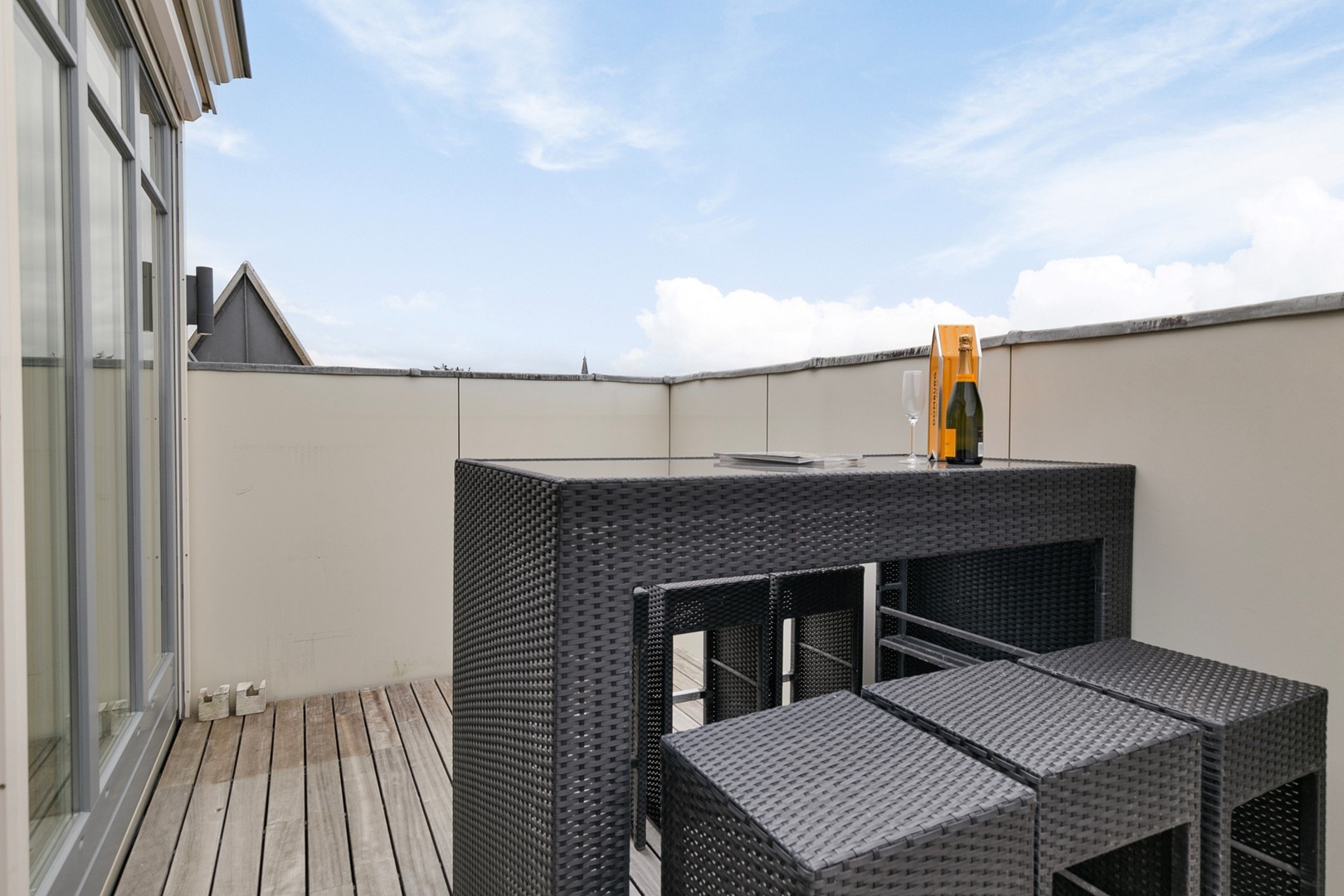 Vanuit de living loopt u via een open trap naar het rooftop terras. Hier kunt u genieten van het prachtige uitzicht en ervaart u een gevoel van ontspanning en vrijheid. Of u nu in de zomer geniet van een cocktail onder een heldere hemel, of in de winter met een dekentje en warme chocolademelk, het rooftop terras voegt iets bijzonders toe aan dit exclusieve penthouse!