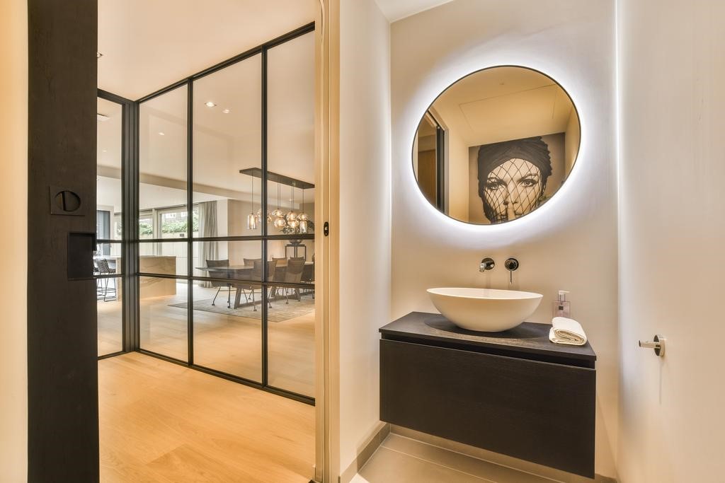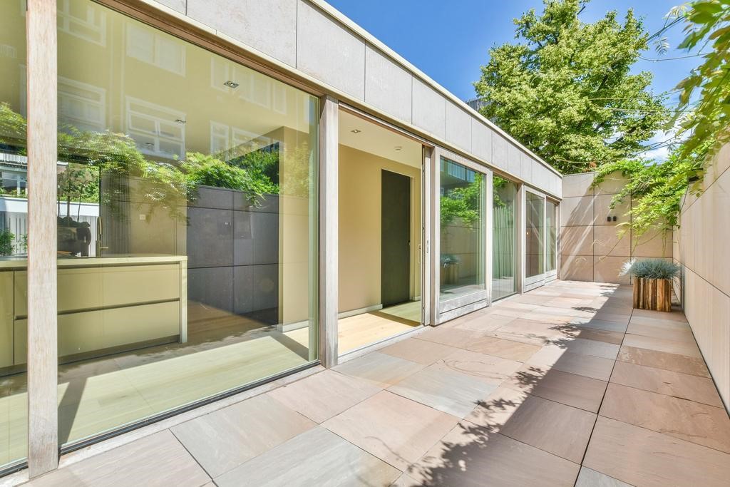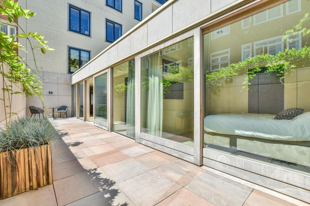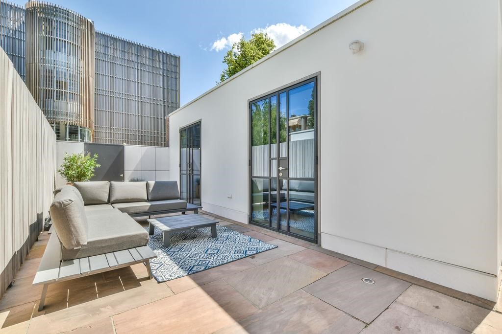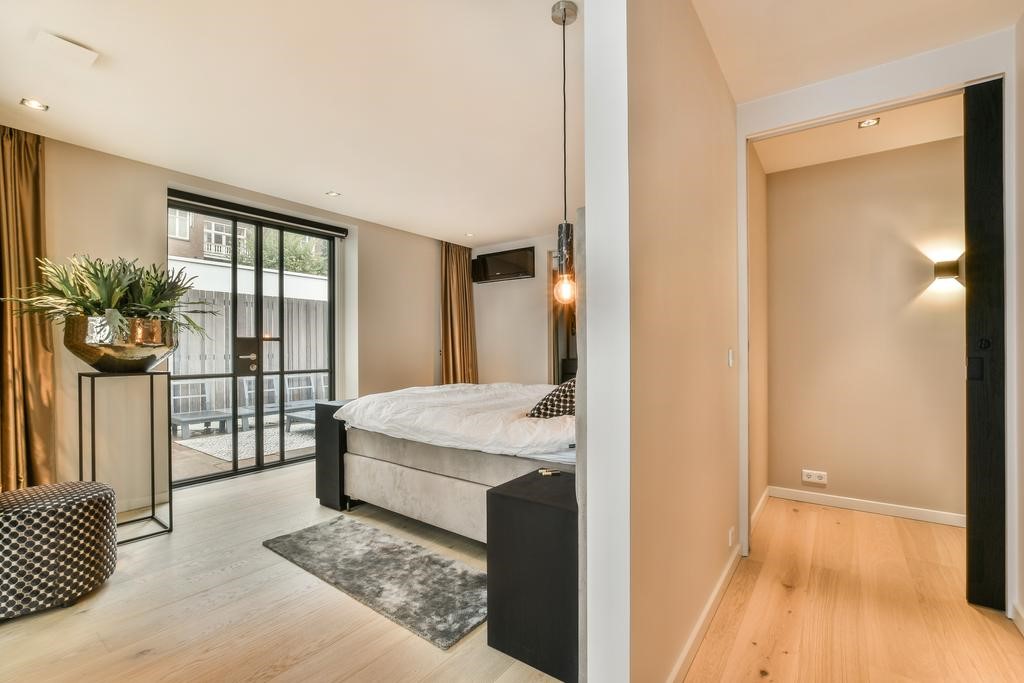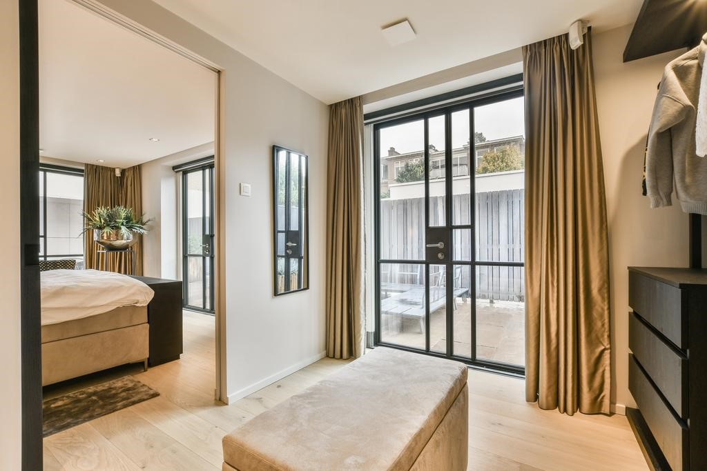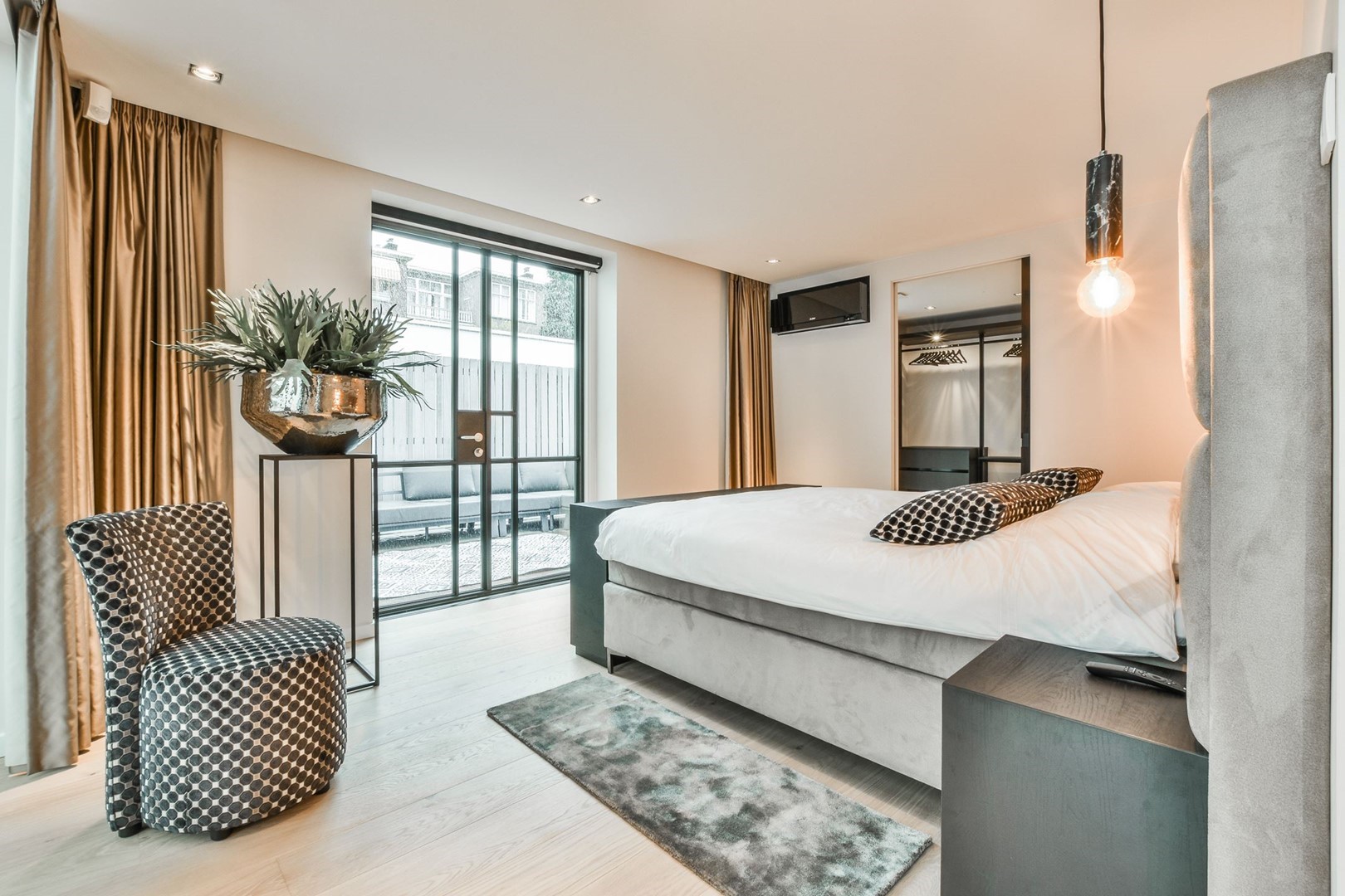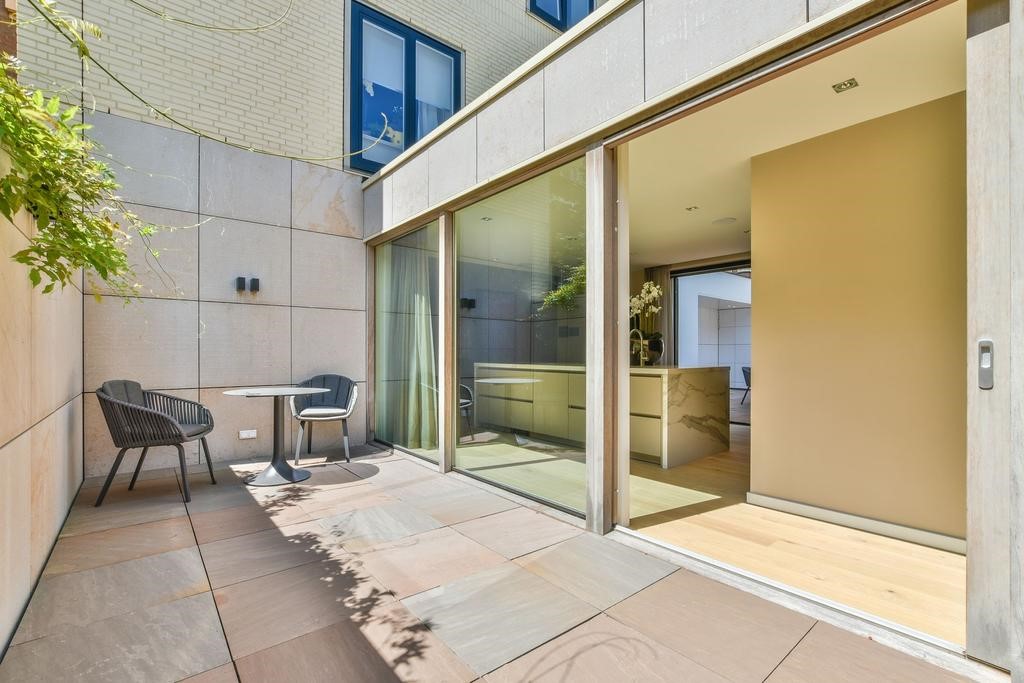 Built in 2016, the apartment is located on the ground floor of an exclusive complex and is equipped with all modern luxuries. Built to a design by Dam & Partners, the architectural firm of Cees and son Diederik Dam. The entire apartment is very luxuriously and tastefully furnished. It features oak flooring with underfloor heating, designer recessed lighting, glass-in-steel doors and partition walls combined with heavy wooden sliding doors, a luxury kitchen with high-quality appliances and two luxury bathrooms. Furthermore, the apartment features a back garden and a side garden.