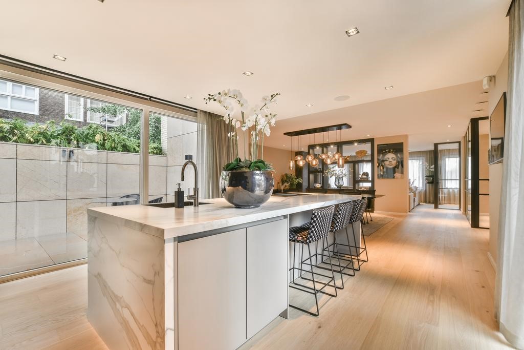 Zeer luxe, modern, sfeervol begane grond appartement van circa 194 m² met tuin van circa 137,5 m² op het noordwesten en twee brede parkeerplaatsen en een berging in de onderbouw, gelegen in een exclusief appartementengebouw in Amsterdam Oud Zuid.
