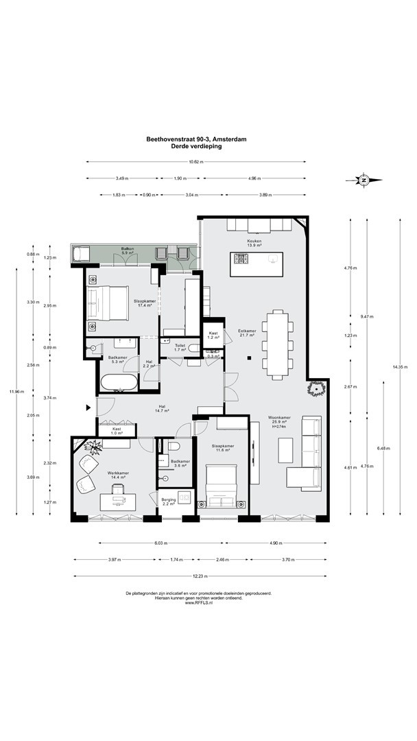 Met een riante living, uitnodigende eetkeuken, drie ruime slaapkamers, twee luxe badkamers en een zonnig west-balkon biedt deze woning alles voor wie royaal en ontspannen wil wonen op een absolute toplocatie.