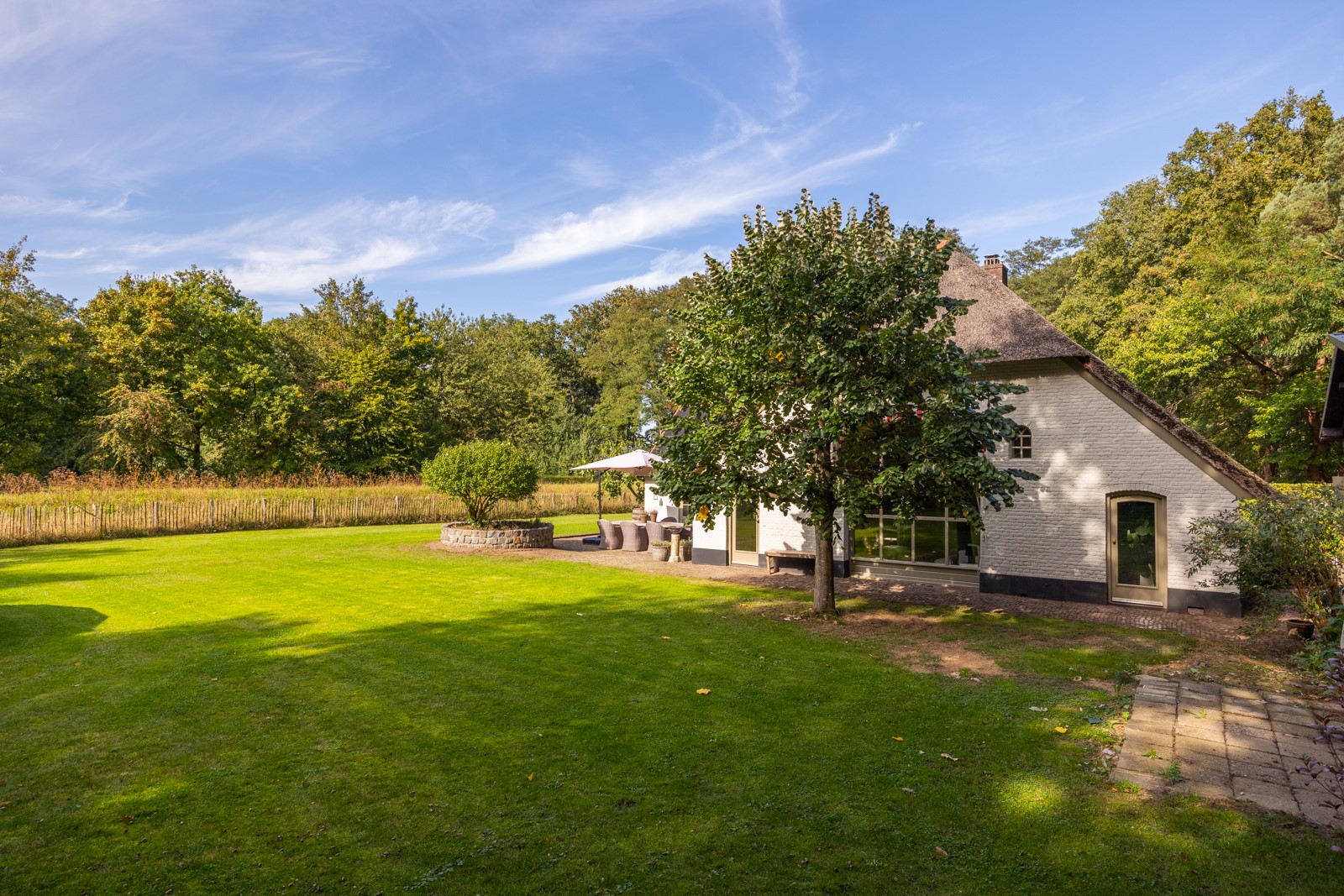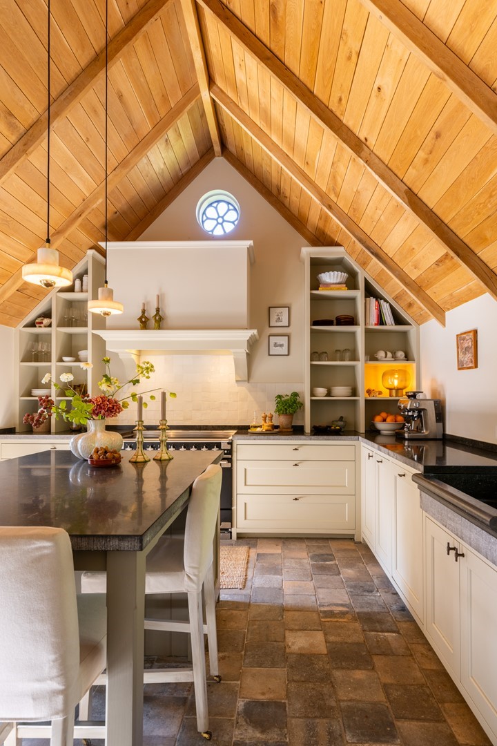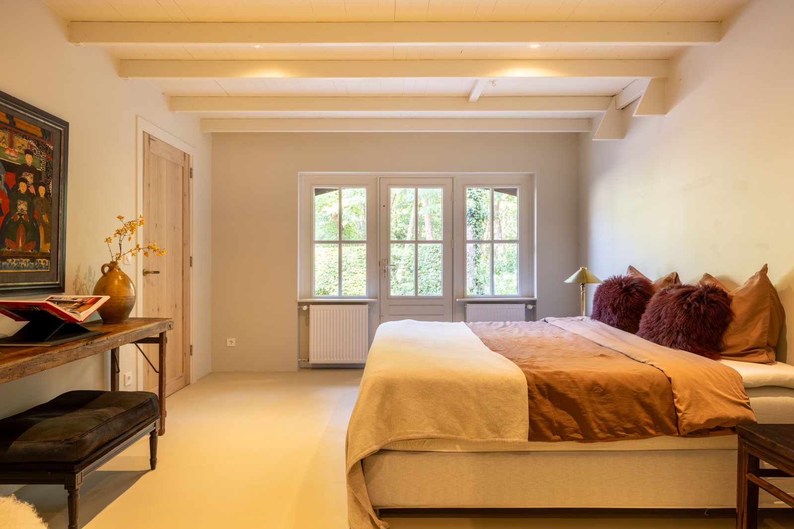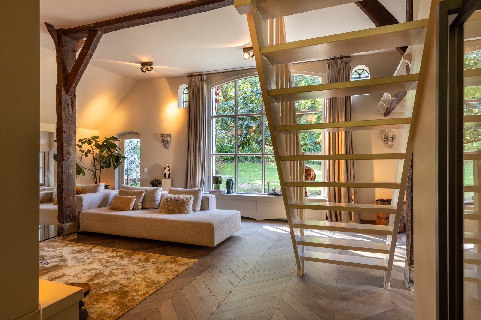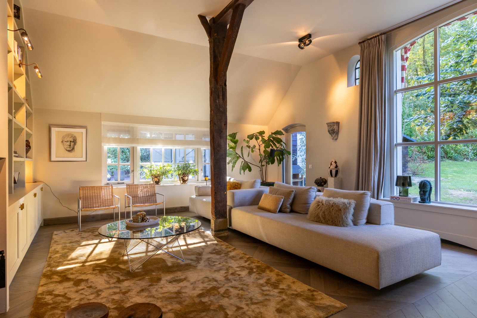 U parkeert achter het witte hek op het grind. De entree ligt in de schaduw van een grote magnolia. Binnen springt de stijlvol gerestaureerde opkamer direct in het oog. De aangrenzende maatwerkkeuken met Falconfornuis (inductie) is haast professioneel uitgerust. In de woonkamer contrasteren strak gestucte wanden met de ‘nostalgische’, nieuw gemaakte balken en hildes. Stalen deuren zorgen voor ruimtelijkheid. De HR Barbas houtkachel zorgt voor warmte in de winter; in de zomer biedt – net als vroeger - de leilinde schaduw. U ziet en voelt dat alles in en om dit thuis tot in detail is doordacht en met alleen de allerbeste materialen werd uitgevoerd.