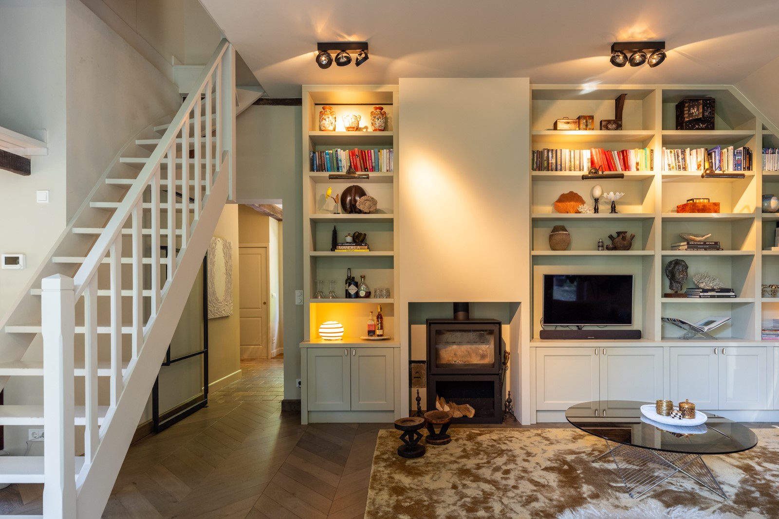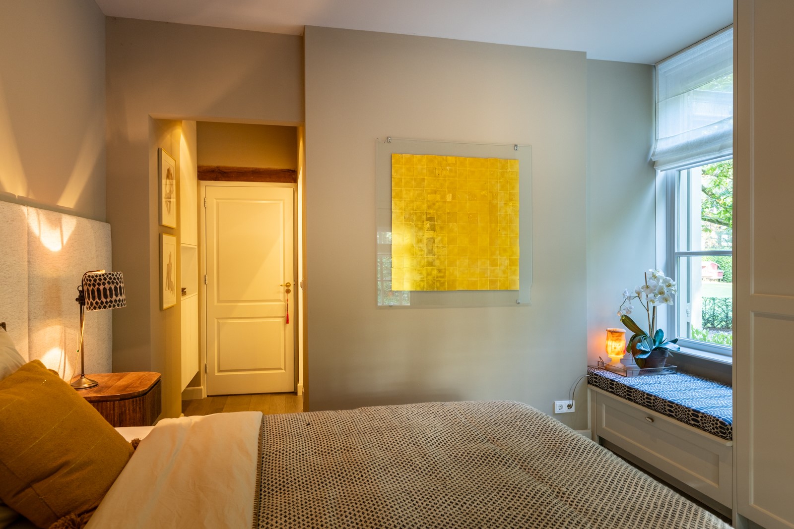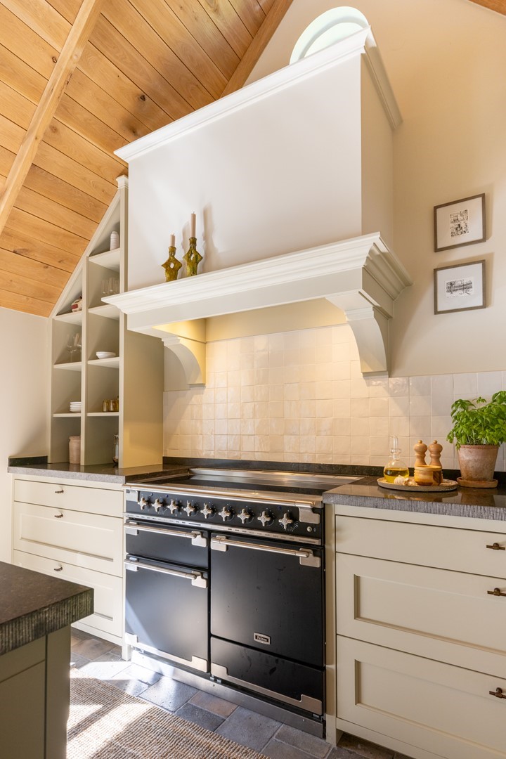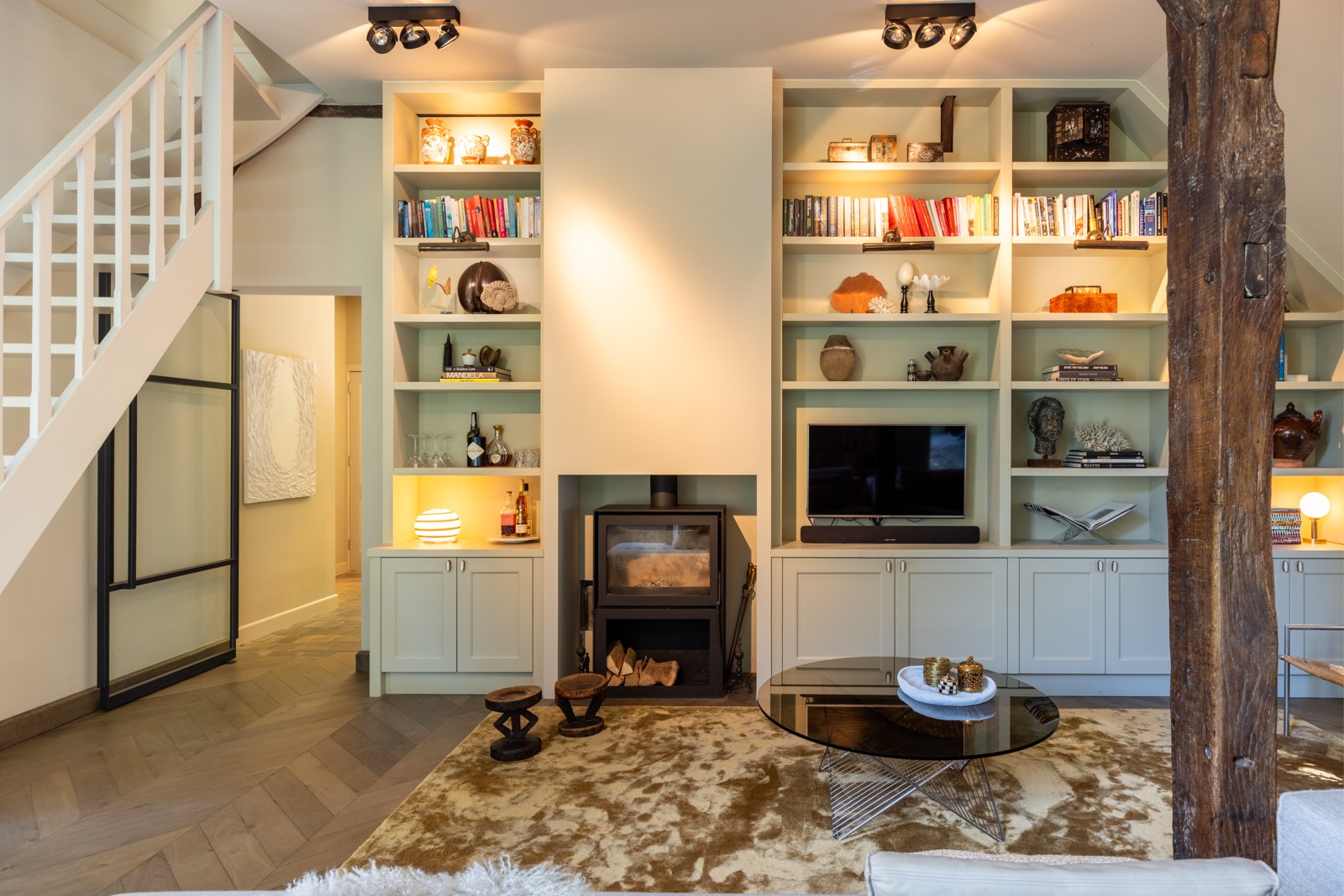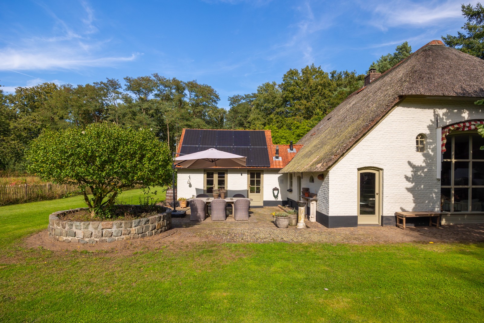 U parkeert achter het witte hek op het grind. De entree ligt in de schaduw van een grote magnolia. Binnen springt de stijlvol gerestaureerde opkamer direct in het oog. De aangrenzende maatwerkkeuken met Falconfornuis (inductie) is haast professioneel uitgerust. In de woonkamer contrasteren strak gestucte wanden met de ‘nostalgische’, nieuw gemaakte balken en hildes. Stalen deuren zorgen voor ruimtelijkheid. De HR Barbas houtkachel zorgt voor warmte in de winter; in de zomer biedt – net als vroeger - de leilinde schaduw. U ziet en voelt dat alles in en om dit thuis tot in detail is doordacht en met alleen de allerbeste materialen werd uitgevoerd.