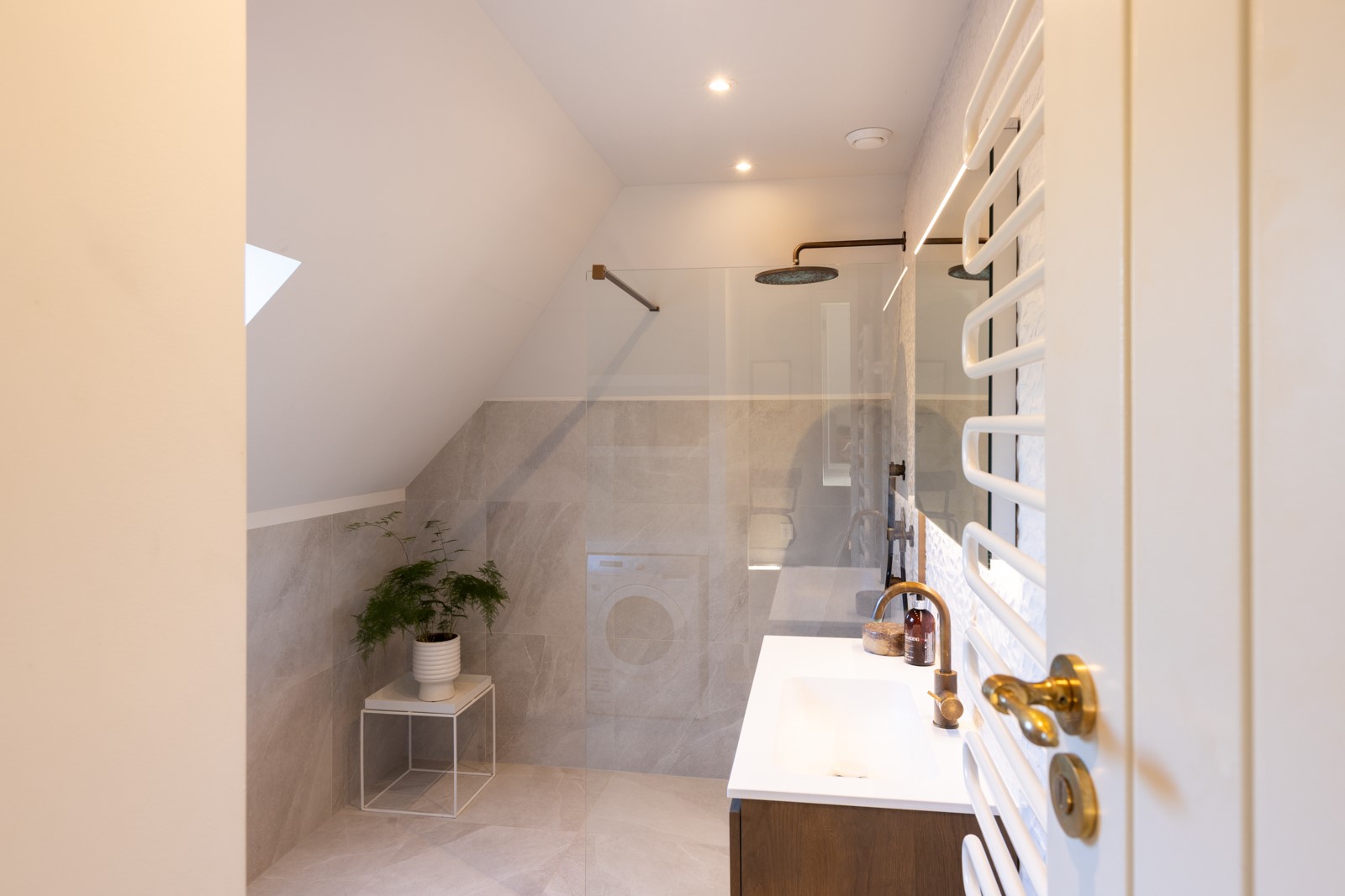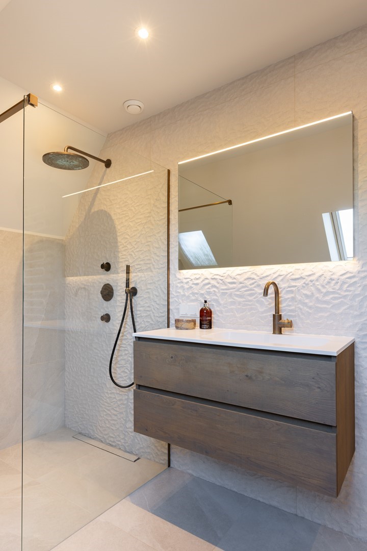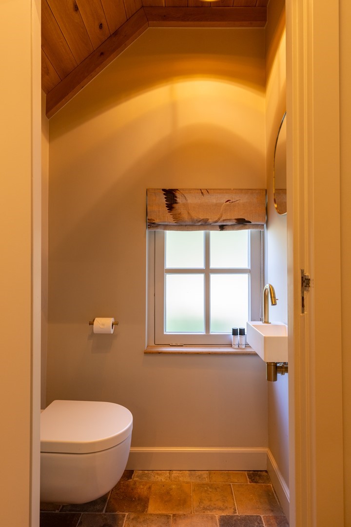 De masterbedroom met eigentijdse badkamer is op de begane grond. In betweens filteren het felste ochtendlicht. Op de verdieping zijn nog eens twee (slaap)kamers. Uw kinderen of gasten hebben een eigen badkamer met, net als beneden, luxe kranen van Hotbath. De indeling maakt de compacte woonboerderij geschikt voor een gezin of een stel dat graag gasten ontvangt. Misschien denkt u ook nog wel aan wat schapen, kippen of nog anders. In de haast sprookjesachtige omgeving is veel mogelijk.