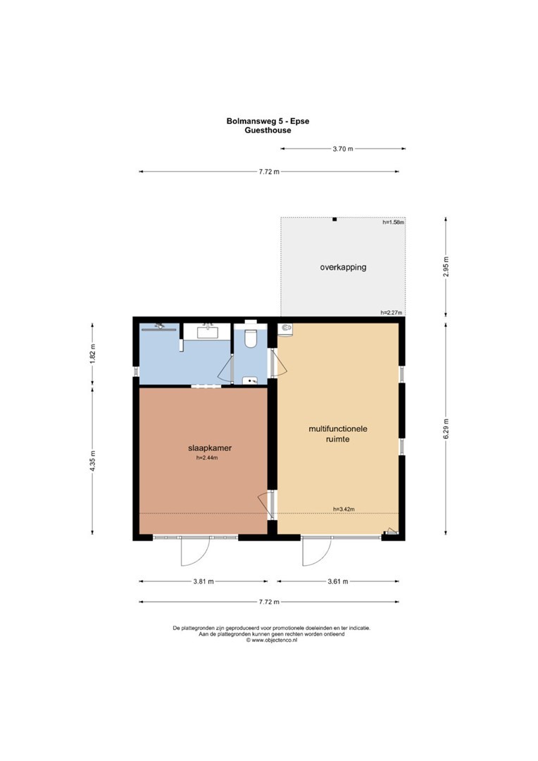 Begane grond (48 m²): Entree. Multifunctionele ruimte; volledig voorbereid voor het plaatsen en aansluiten van een keuken. Slaapkamer. Badkamer voorzien van inloopdouche, wastafel en separaat toilet.