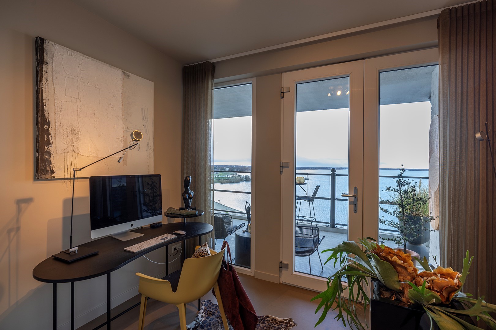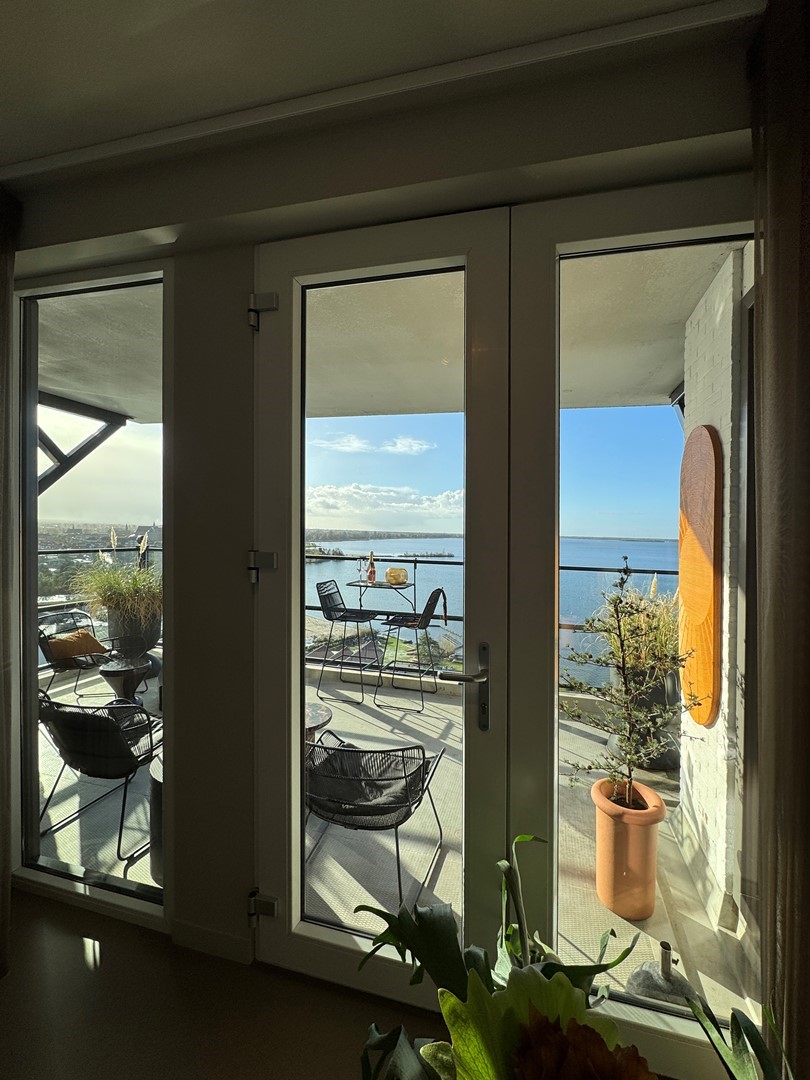 ‘’Het is werkelijk waar iedere dag anders wonen in ons appartement. Dat komt doordat het water en de natuur iedere dag weer een ander uitzicht geeft. Alles wat wonen comfortabel en veilig maakt hebben we hier. Toch gaan wij een nieuw avontuur aan en gunnen ons unieke appartement aan nieuwe bewoners, maar zullen deze plek het meest gaan missen van allemaal.’’