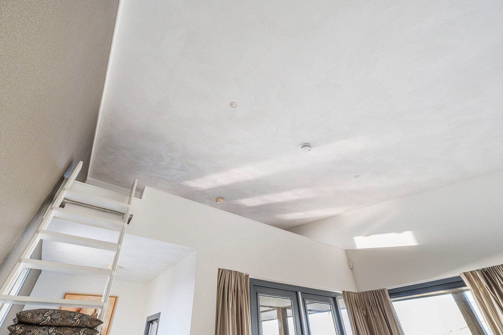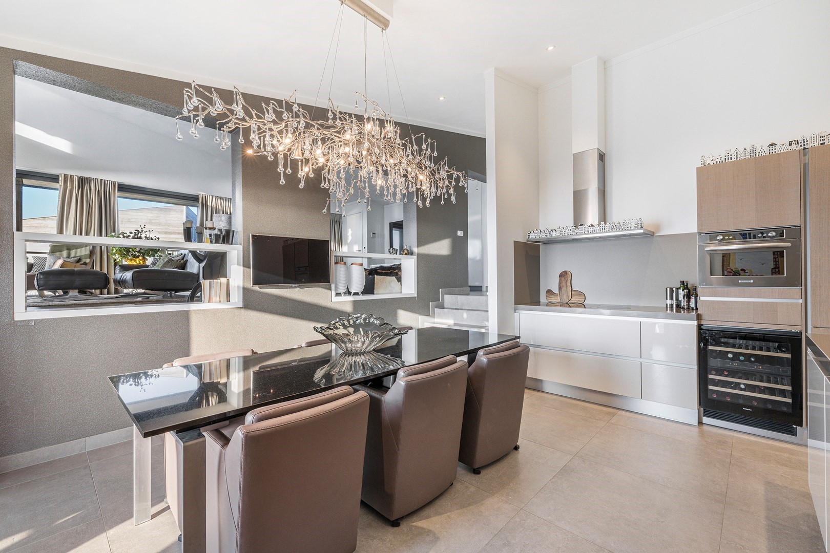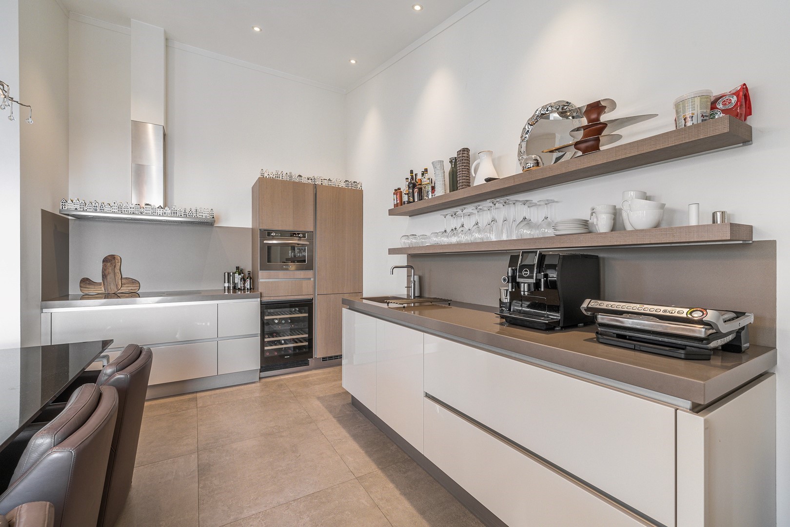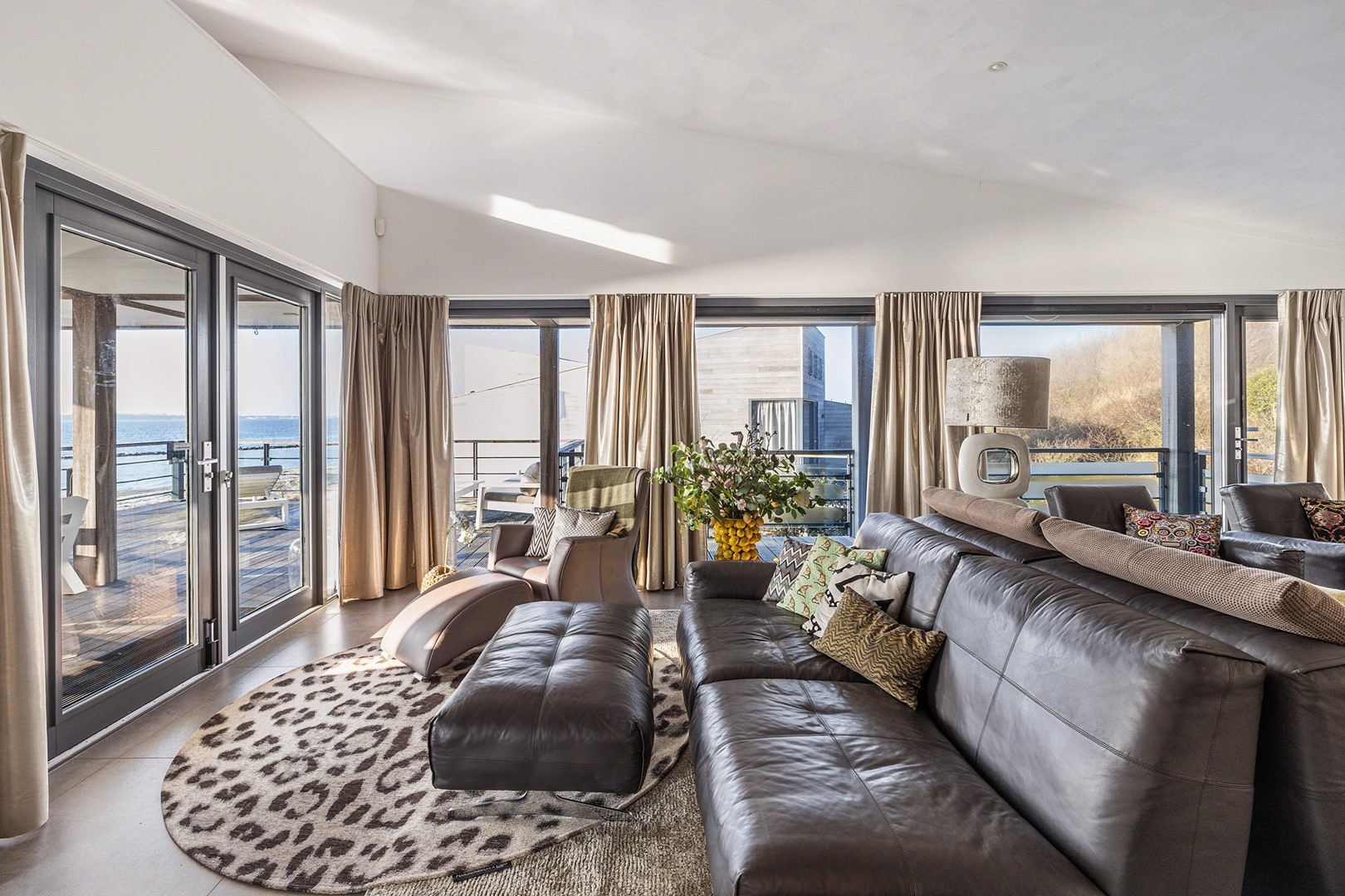 De luxueuze keuken heeft een open en speelse verbinding met de hoger gelegen living. De keuken is uiteraard van alle gemakken voorzien waaronder een design ABK inbouwkookplaat, KitchenAid oven wijnklimaatkast, vaatwasser (beide Miele) en een Quooker. Via een niveautrap bereik je de hoge gelegen living welke door de vele raampartijen altijd een prachtig zicht heeft op de unieke omgeving en het Grevelingenmeer. De zeer royale living is voorzien van sfeervolle pelletkachel en een prachtige hoogte wat bijdraagt aan het ruimtelijke gevoel. De fijne ruime living heeft tevens een loftruimte waar mogelijk extra gasten kunnen logeren of waar kinderen kunnen spelen. Vanuit de living heb je toegang tot het separaat toilet en de twee slaapvertrekken, beide met eigen badkamer en-suite. De slaapkamers zijn voorzien van airco. De badkamers zijn ingericht met een dubbele wastafel, inloopdouche en een toilet. Vanuit één badkamer heb je toegang tot de aparte bergruimte met de opstelplaats van de wasmachine en droger.