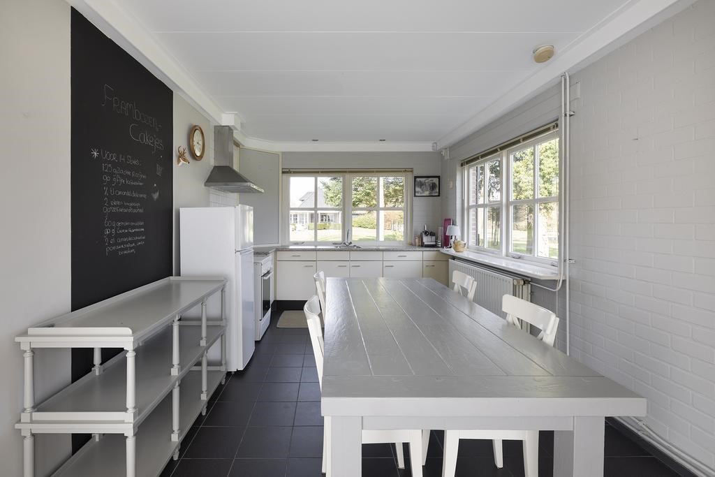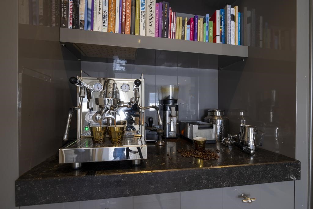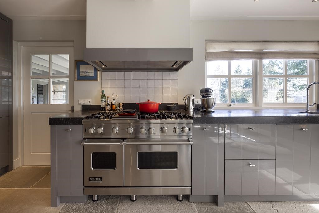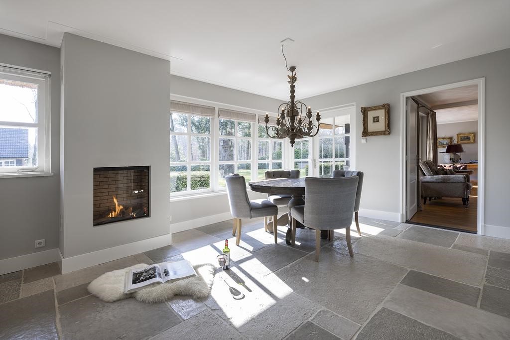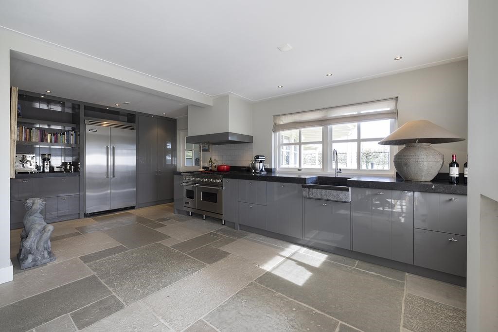 Verder is er een grote koel-vriescombinatie en vaatwasser aanwezig. Het natuurstenen aanrechtblad, deels gefrijnd, straalt stijl en luxe uit. De prachtige klassieke vloer met ‘castle stones’ is voorzien van vloerverwarming maakt deze ruimte tot een heerlijke familiekeuken! Zeker met de openslaande deuren naar het terras is dit een geliefde plek om bij elkaar te zijn!