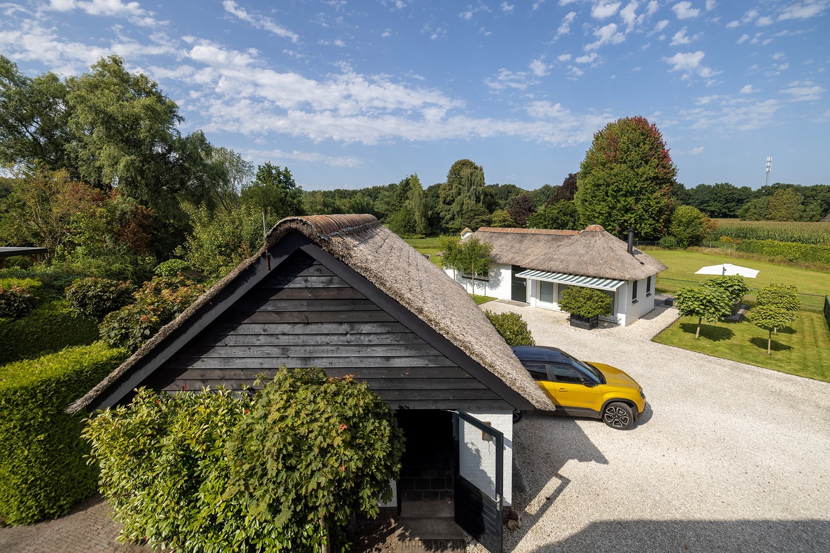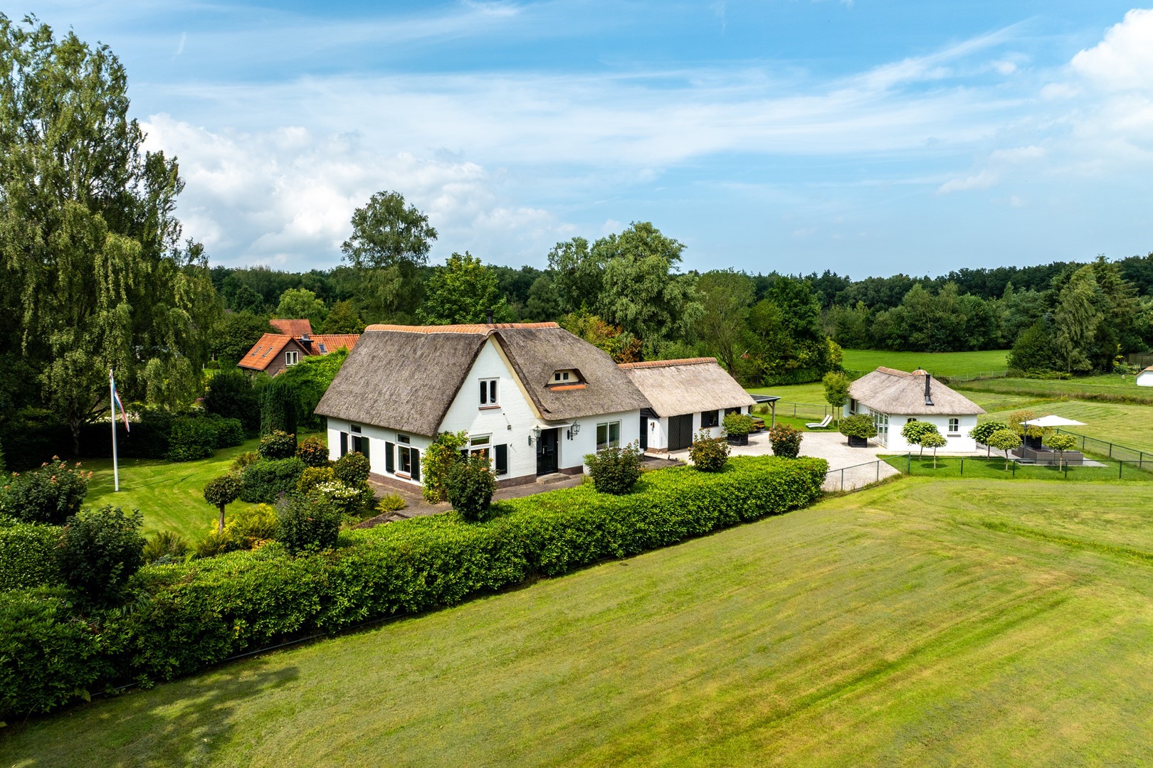 “Exclusief rietgedekt LANDHUIS met gastenverblijf, weiland en sublieme ligging tussen bos en strand op de Veluwe”
