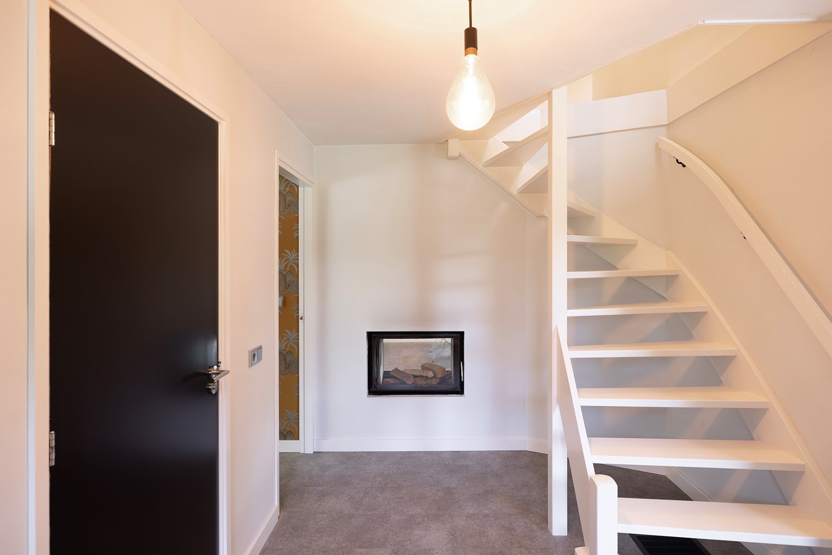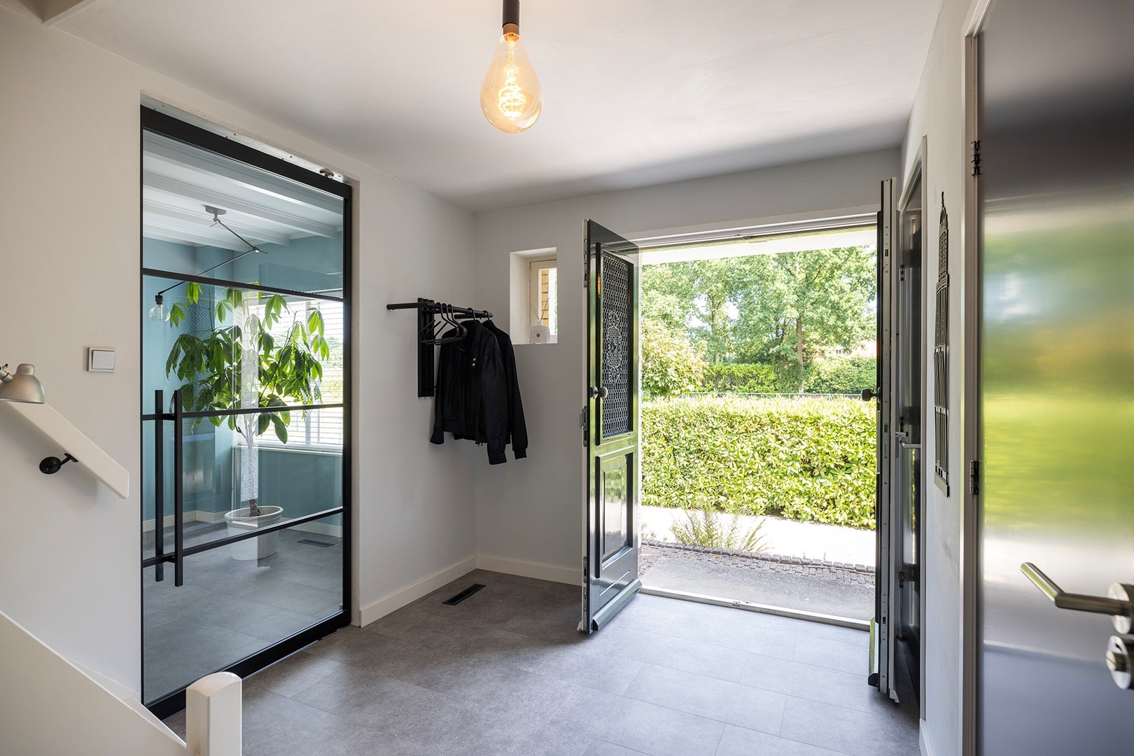 Zodra u het perceel oprijdt langs de indrukwekkende rododendrons, zult u onder de indruk zijn van dit lieflijke perceel. Het landhuis staat verhoogd wat een chique uitstraling geeft. Met enkele traptreden bereikt u de dubbele voordeur. De ruime entree geeft toegang tot alle ruimtes op de parterre. De gehele eerste verdieping is voorzien van een pvc vloer met geluiddempende ondervloer. In de hal bevindt zich de garderobe en het toilet met fonteintje en sensorverlichting. De sfeervolle doorkijkhaard verbindt de entree met de living en door een ventilator is de warmte ook in de entree voelbaar! De werkkamer heeft meerdere ramen en is daardoor een prettige werkplek. Tevens kunt u hier ook denken aan een extra slaapkamer zodat u levensloopbestendig kunt wonen. Uiteraard is dit ook een ideale studeer- of speelkamer voor de kinderen.