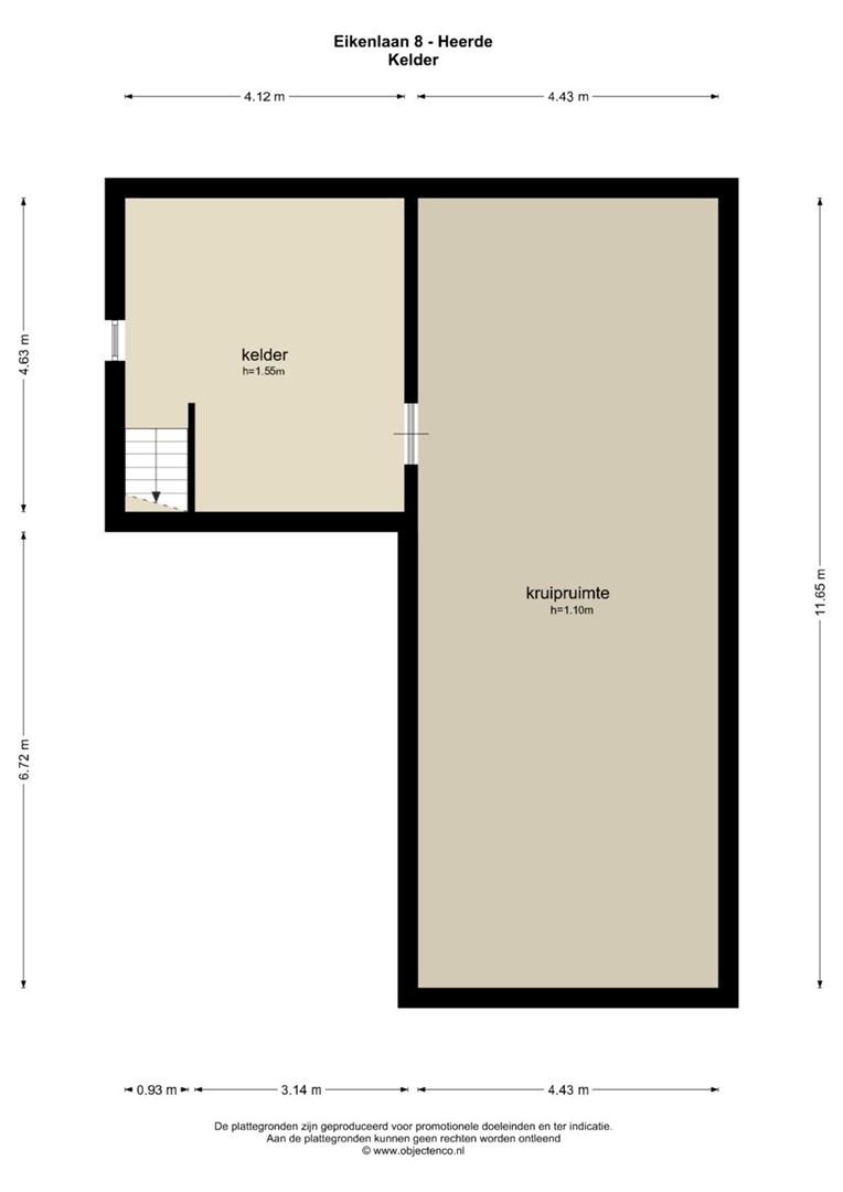Naast de voordeur is de kelder met meterkast. De kelder loopt tot onder de werkkamer. Ook is hier toegang tot de kruipruimte (met verlichting).