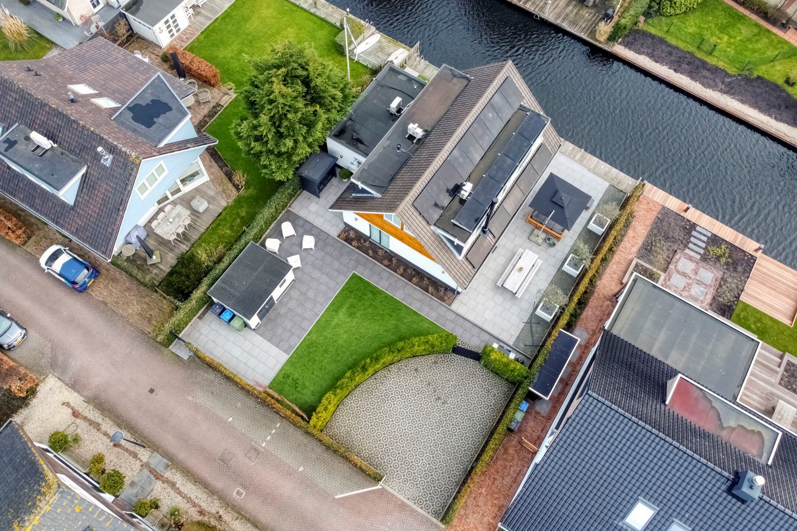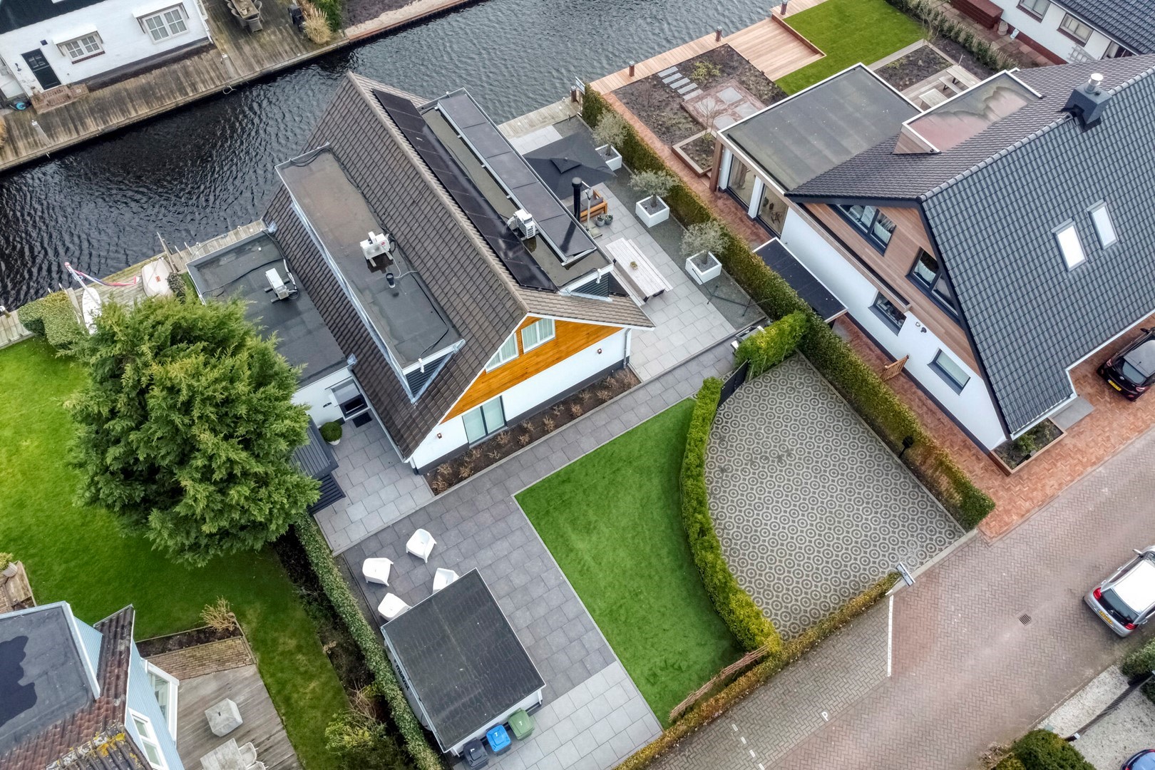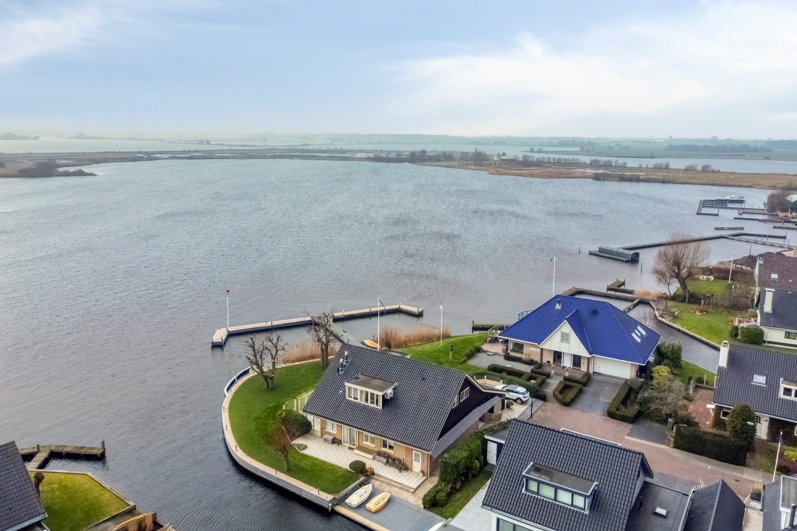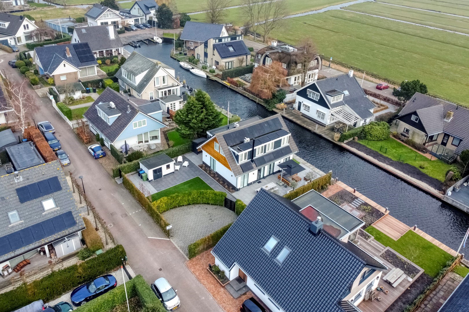 Moderne, volledig gerenoveerde villa, direct aan vaarwater gelegen met fraaie aanlegsteiger en terrassen. Aanlegmogelijkheden voor diverse boten zowel voor sloep alsook staande mast. In- en uitvaart onbelemmerd direkt naar de Kagerplassen.