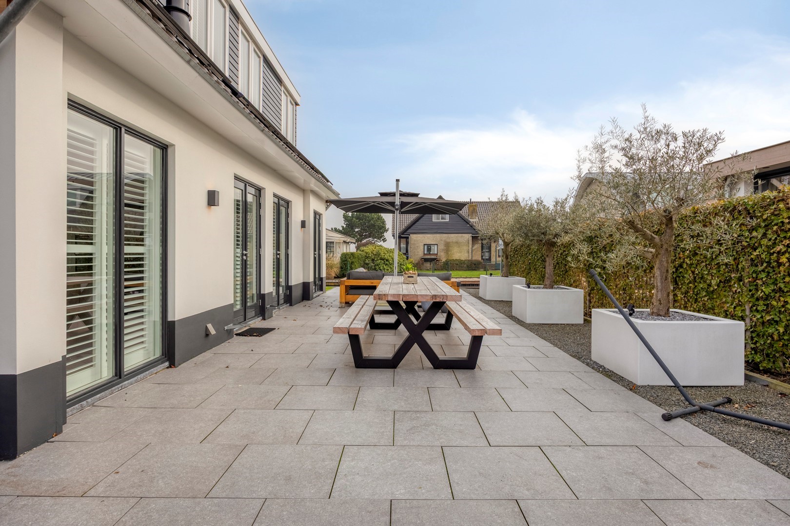 Er zijn diverse terrassen aangelegd. Alle terrassen zijn nieuw aangelegd met aantrekkelijke plantenbakken met olijfbomen. U kunt op elk moment van de dag van de zon genieten.