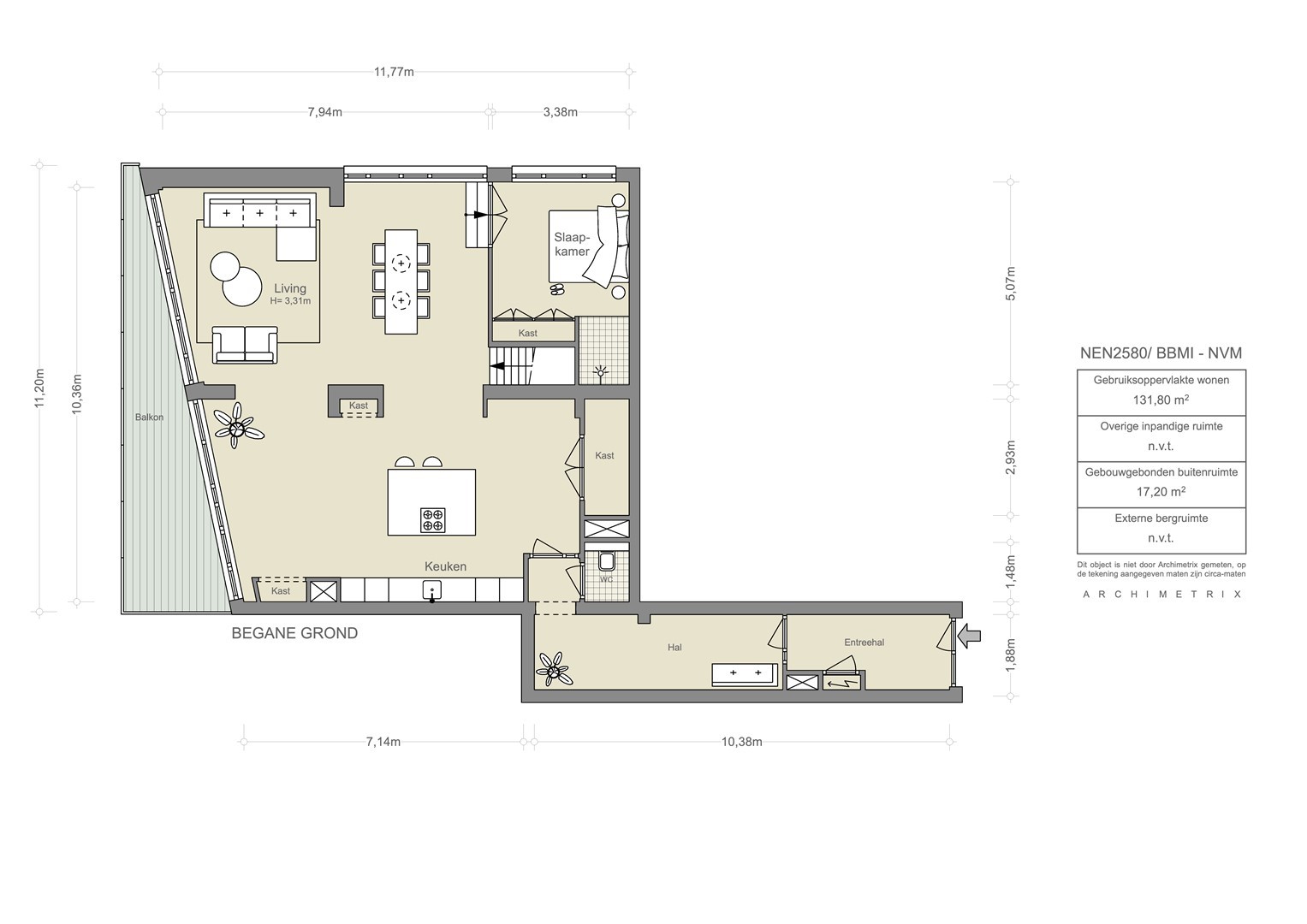 The measurement instruction is based on NEN2580 and intended to provide a uniform method for determining the usable floor area. Differences in measurement outcomes may occur due to variations in interpretation, rounding, or limitations during measurement.