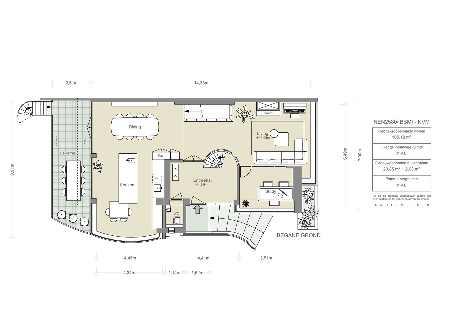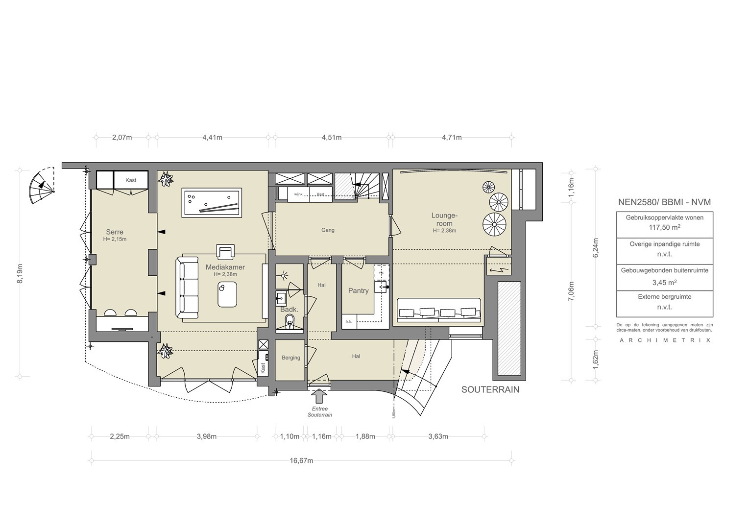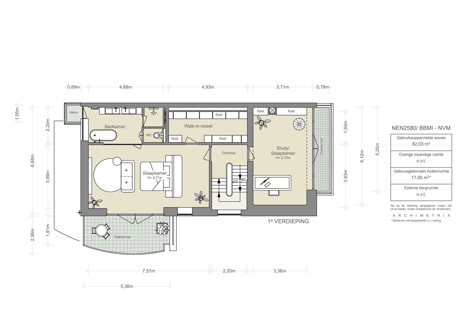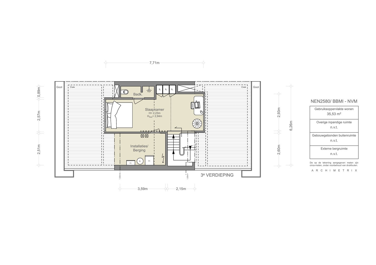 Deze informatie is door ons met de nodige zorgvuldigheid samengesteld. Onzerzijds wordt echter geen enkele aansprakelijkheid aanvaard voor enige onvolledigheid, onjuistheid of anderszins, dan wel de gevolgen daarvan. Alle opgegeven maten en oppervlakten zijn slechts indicatief. De meetinstructie is gebaseerd op de NEN 2580. De meetinstructie is bedoeld om een meer eenduidige manier van meten toe te passen voor het geven van een indicatie van de gebruiksoppervlakte. De Meetinstructie sluit verschillen in meetuitkomsten niet volledig uit, door bijvoorbeeld interpretatieverschillen, afrondingen of beperkingen bij het uitvoeren van de meting.