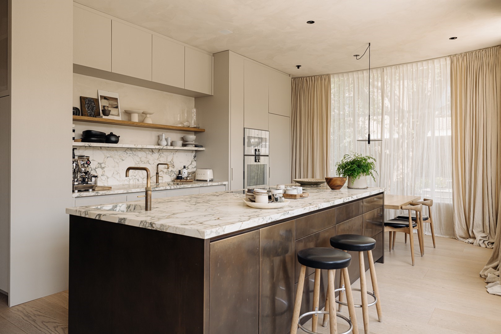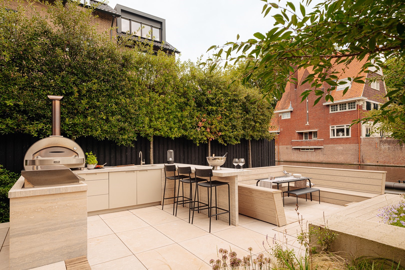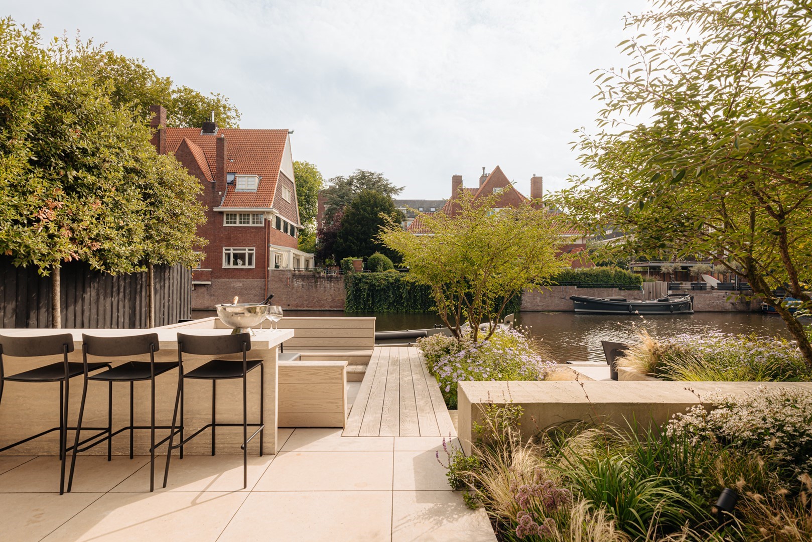 "The kitchen is where we naturally gather most. Positioned towards the canal, it offers an ever-changing view of water, light and trees. It is here, around the table, that days begin and end. Long lunches, shared dinners and time with family and friends have become part of the rhythm of the house."