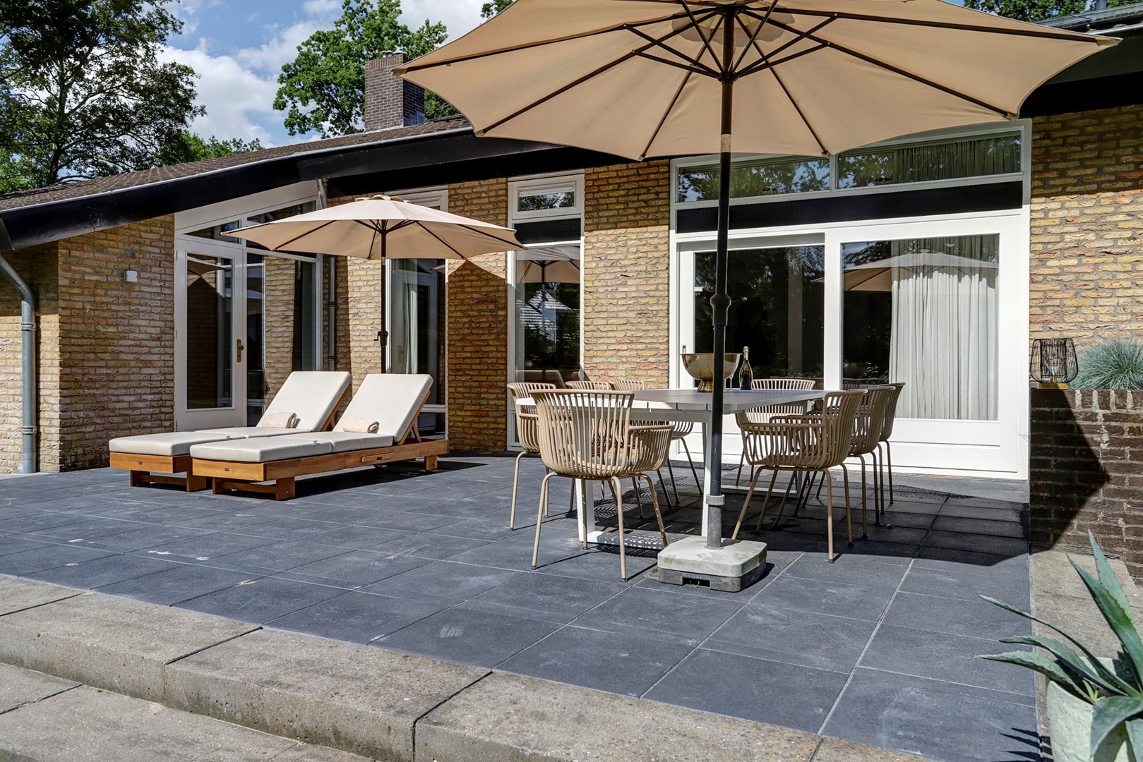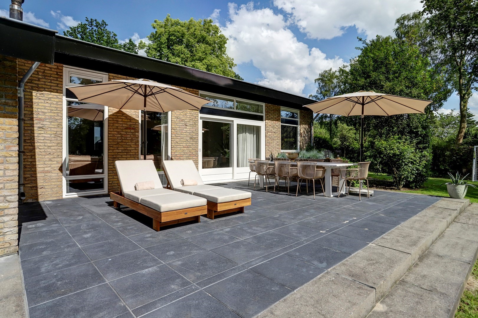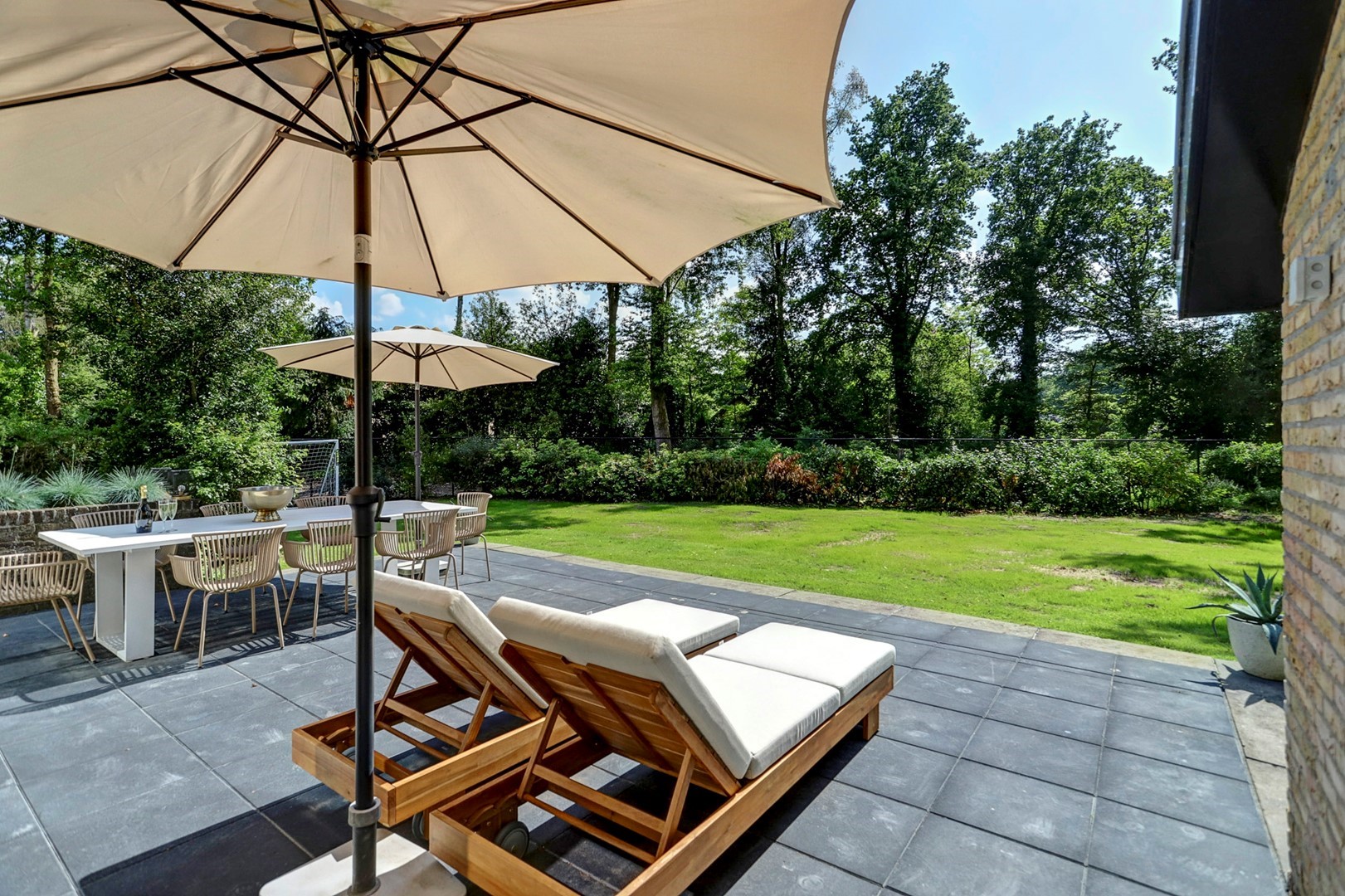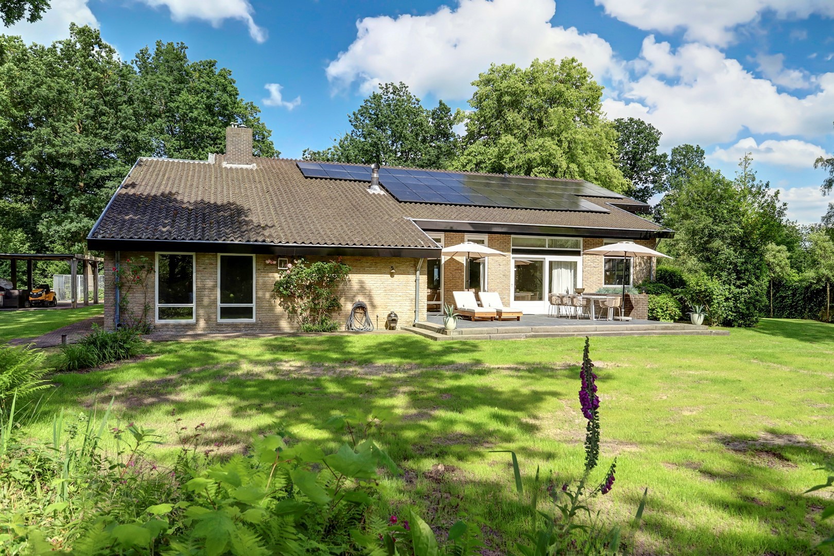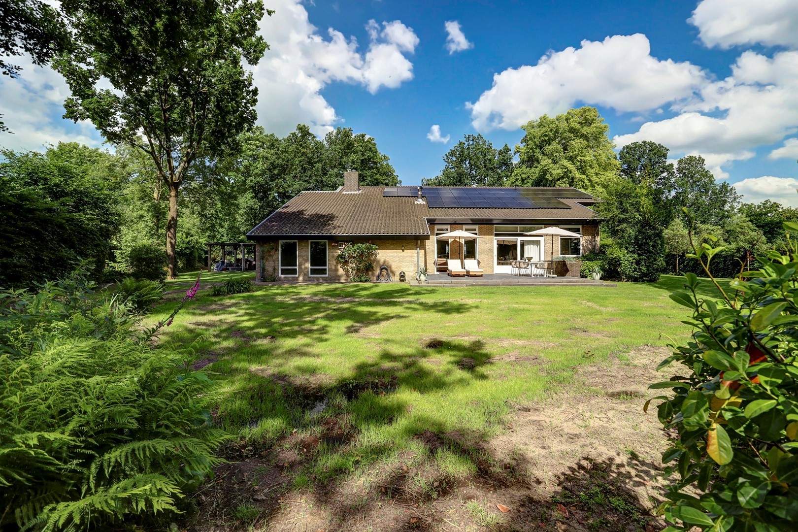 Rondom de villa ligt een royaal perceel dat volledig in het teken staat van rust, privacy en natuurbeleving. De tuin grenst direct aan het Veluwemassief en biedt vrij uitzicht over groen en water. Hier geniet u van zon, stilte en ruimte, met meerdere plekken om het buitenleven optimaal te ervaren, terwijl de omliggende natuur letterlijk begint aan de achterzijde van het perceel.