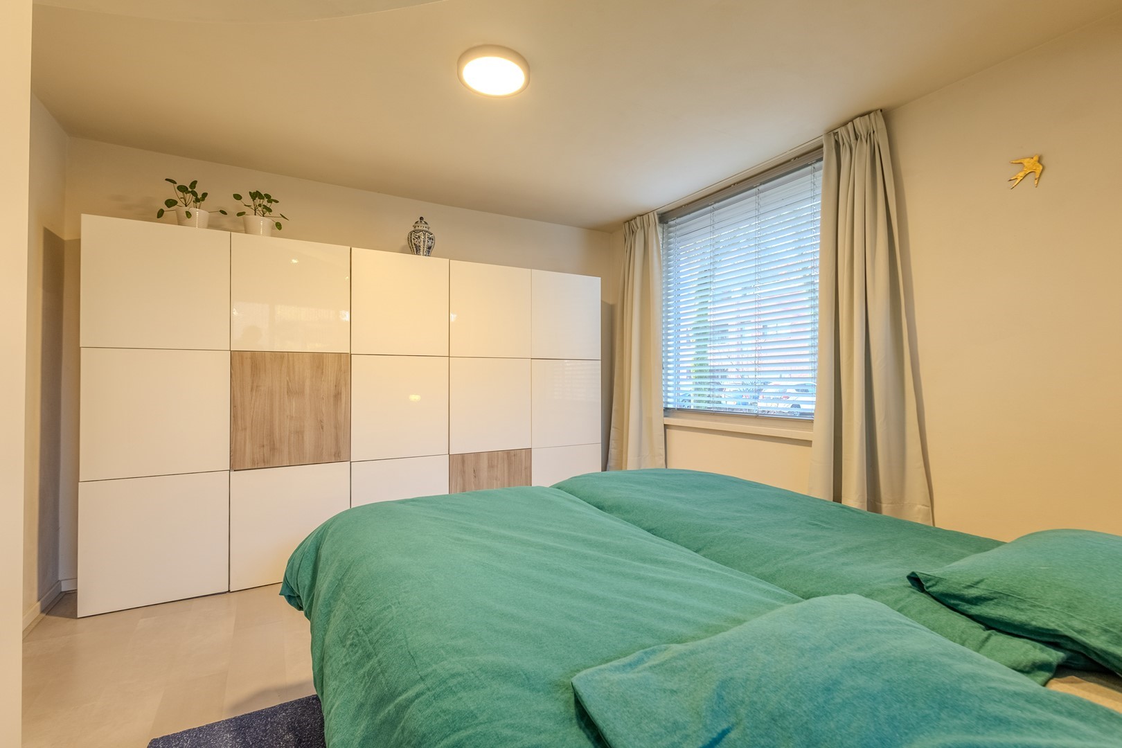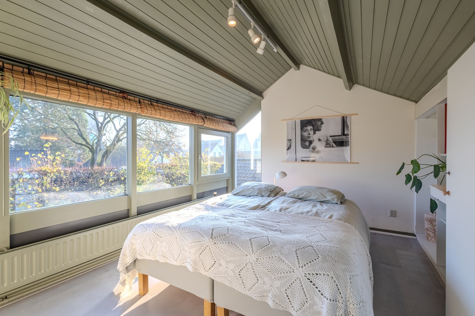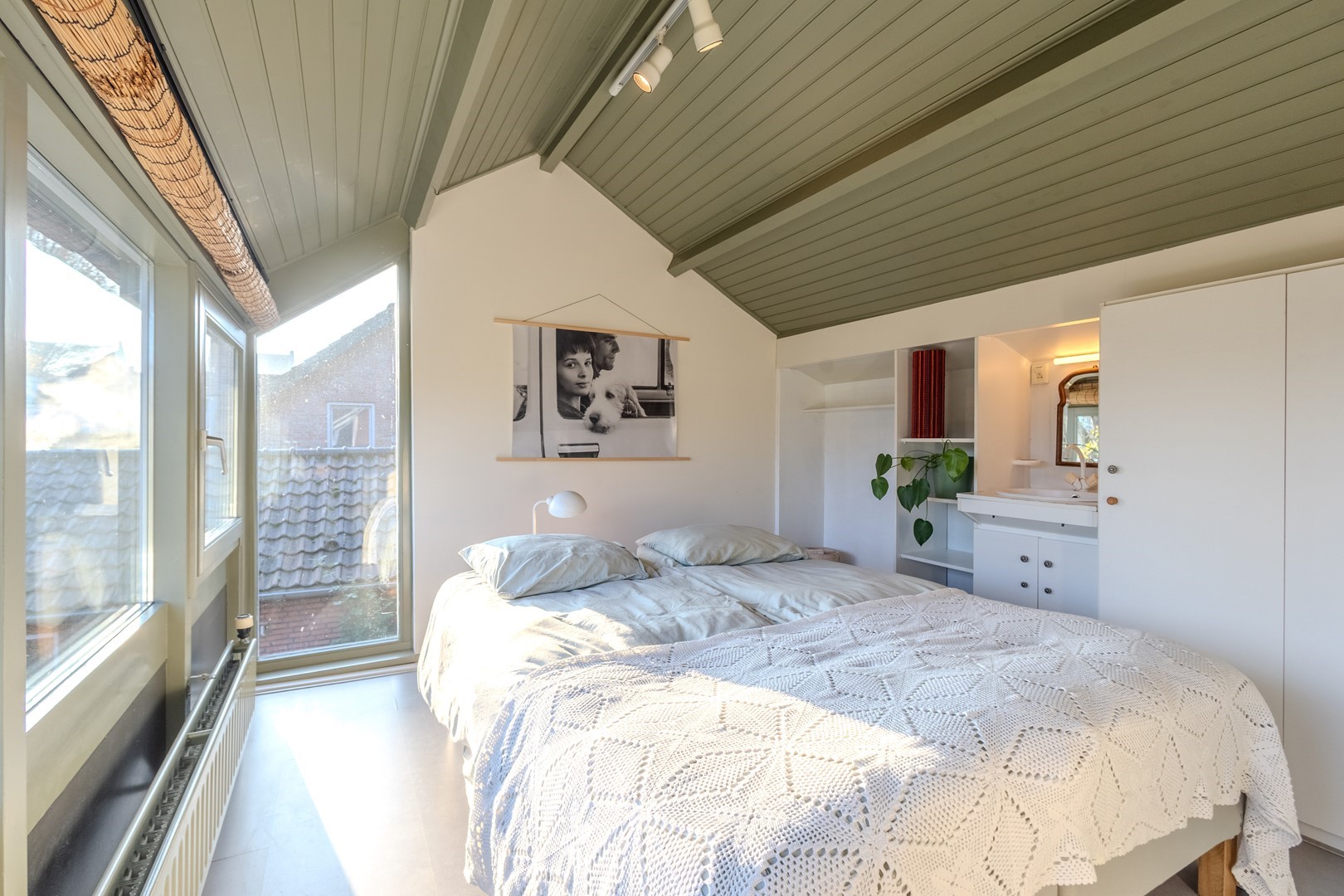 Aan de linkerzijde van de woning bevindt zich nog een derde slaapkamer met de naastgelegen badkamer op de begane grond. Vanuit de slaapkamer heeft u direct toegang tot de achtertuin via een loopdeur. Het mooie plafonddetail met ingebouwde spotjes geeft de slaapkamer een unieke sfeer. Alle slaapkamers zijn voorzien van een moderne laminaatvloer.
