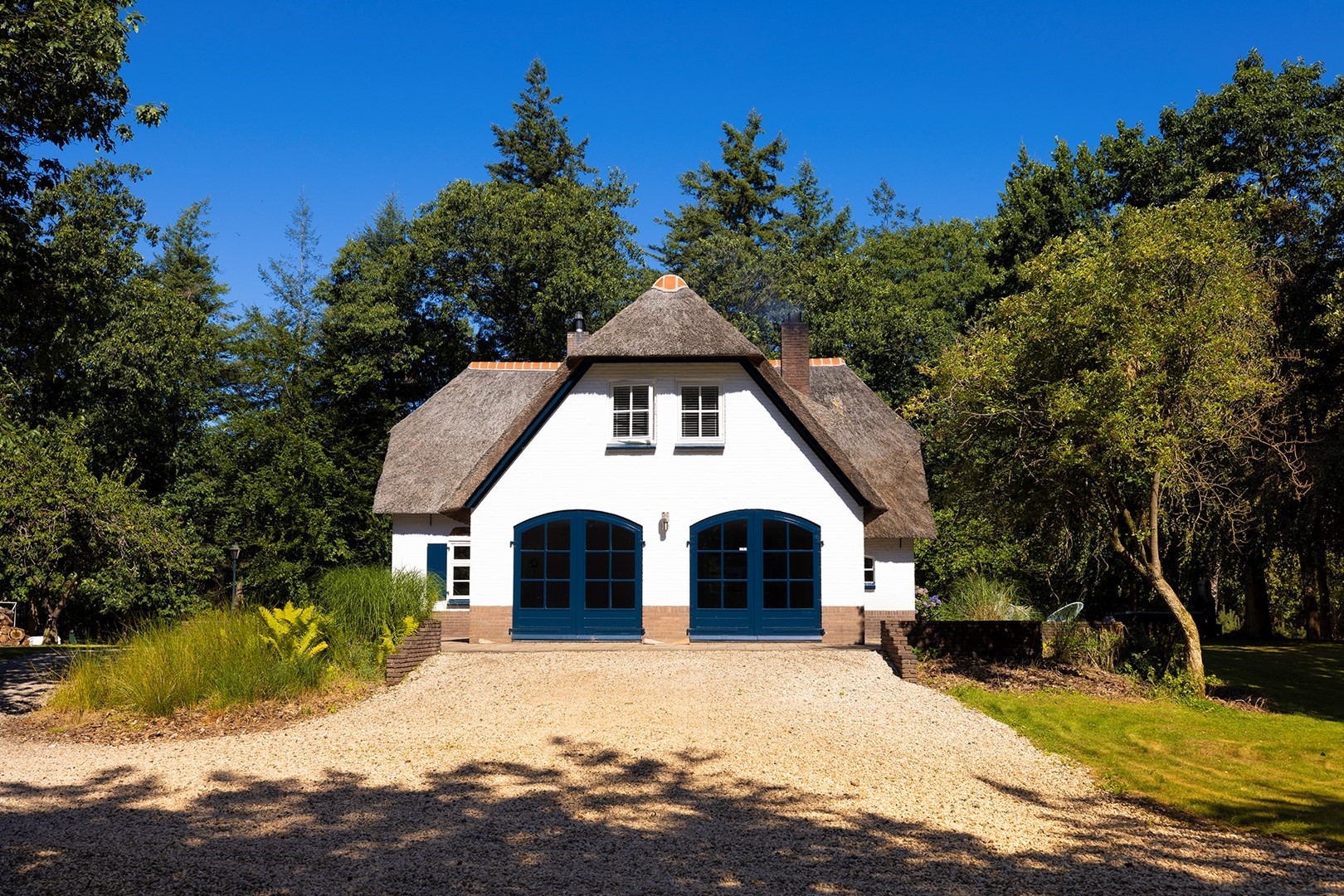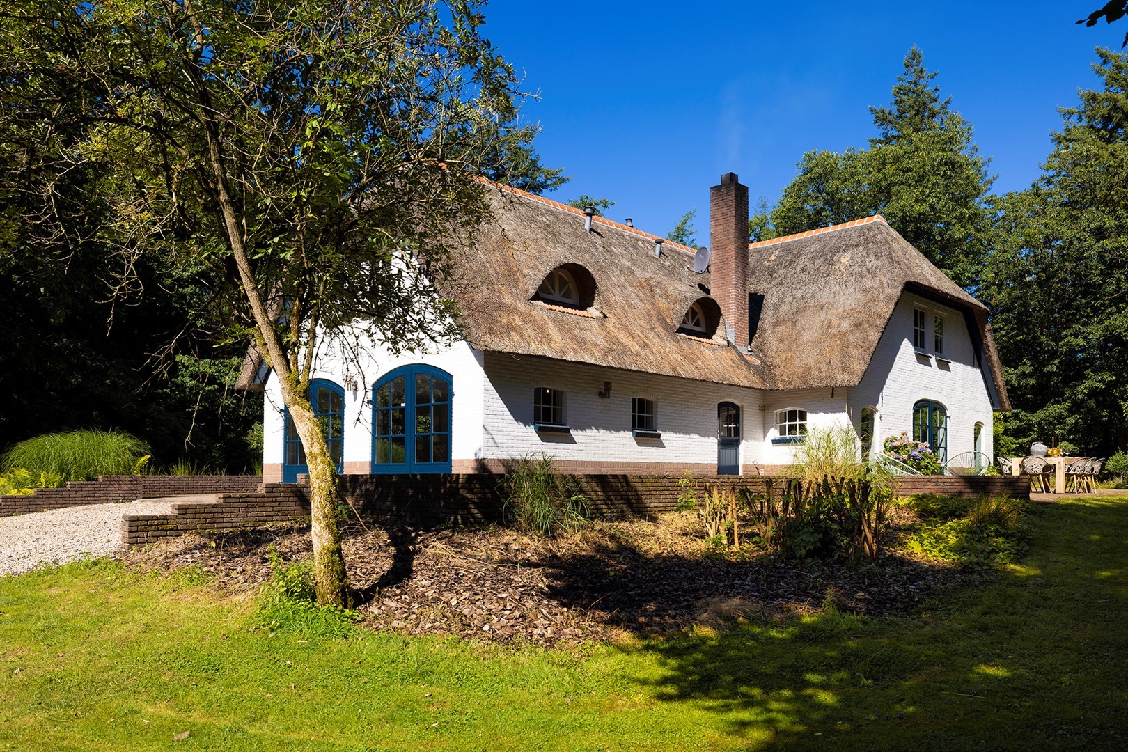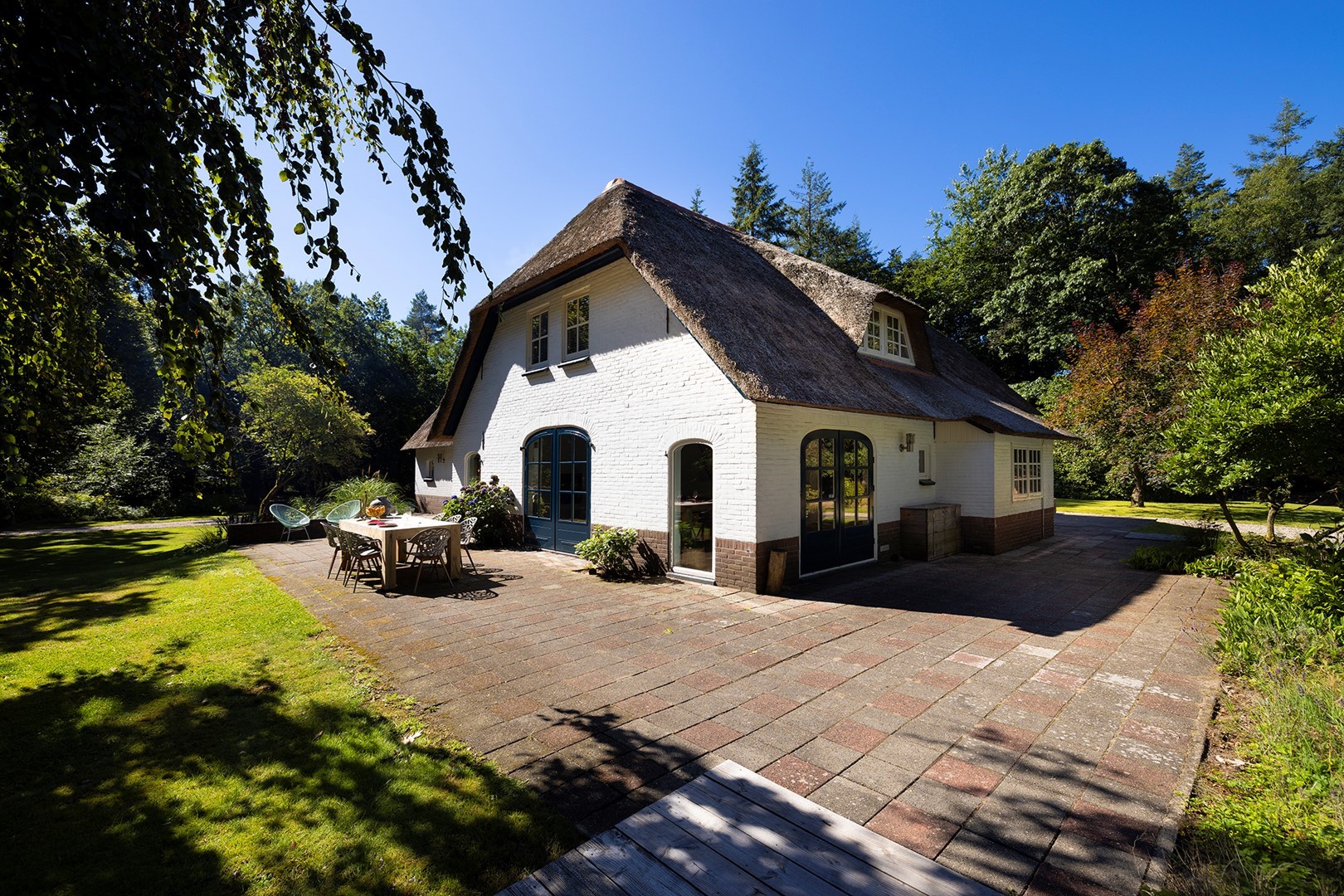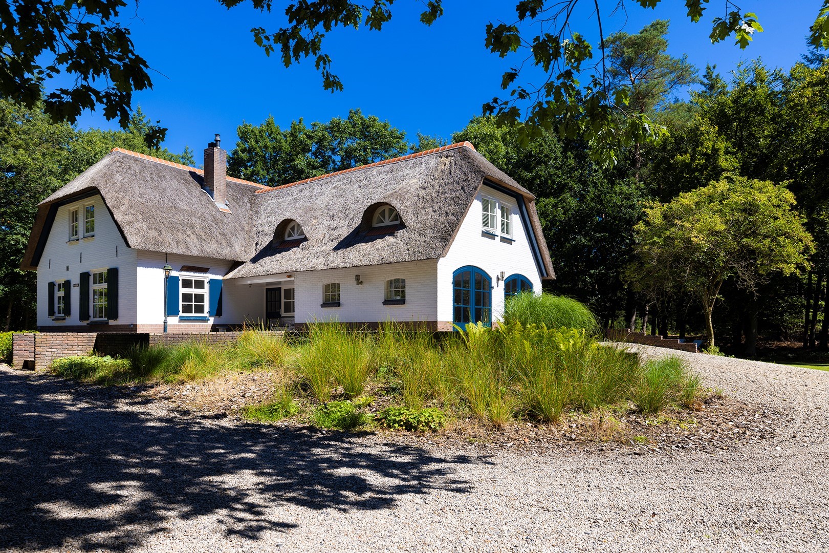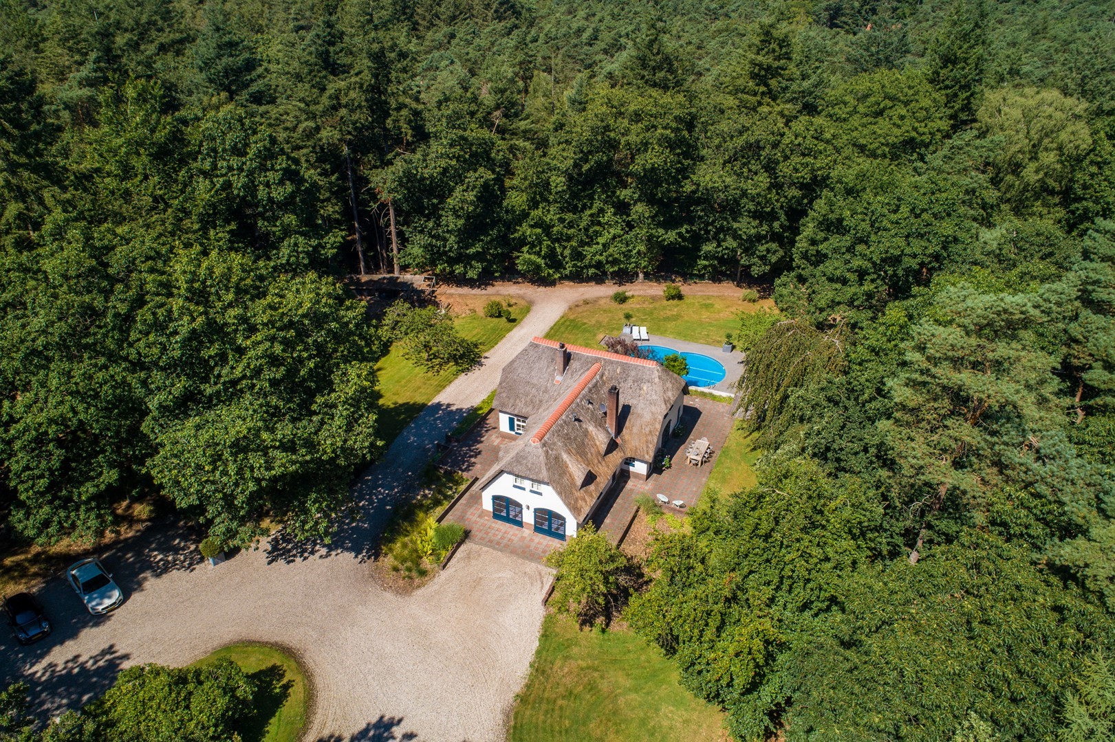 Midden in de natuur, via een verstillend pad met elektrische toegangspoort, bereikt u dit stijlvolle, rietgedekte landhuis “Boschhoeve”. Een veilige thuishaven vol rust en privacy… wakker worden in het bos, begeleid door het concert van vogels die alweer een nieuwe dag aankondigen. Het klinkt alsof u droomt, maar dit is het standaard ochtendritueel aan de Lichttorenweg 12, iedere dag opnieuw. Tijdens een wandeling over uw eigen perceel met bos en tuin van ruim 35.000 m² zult u absoluut een paradijselijke gevoel ervaren! Zelfs aan de achterzijde van uw perceel is een extra uitgang aan de Jachtlustweg. Van de morgen tot de avond, het gehele jaar door, laat deze omgeving u telkens weer het ultieme buitenleven ervaren.