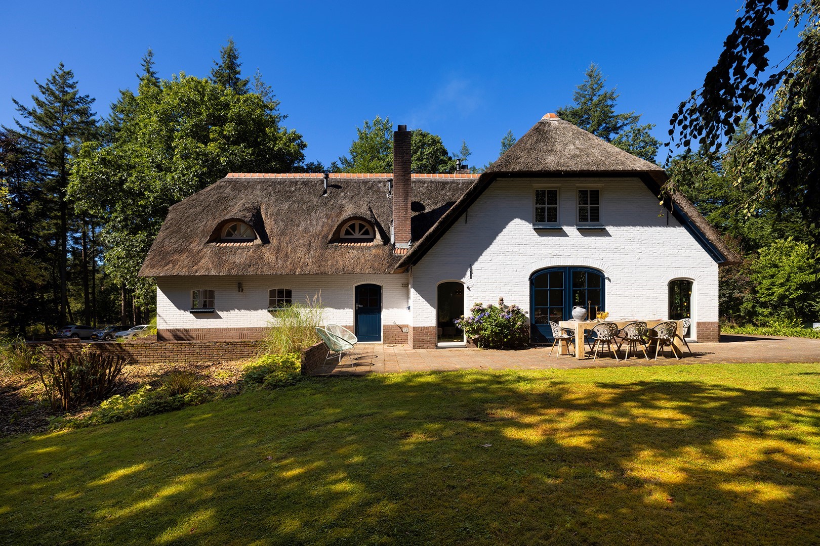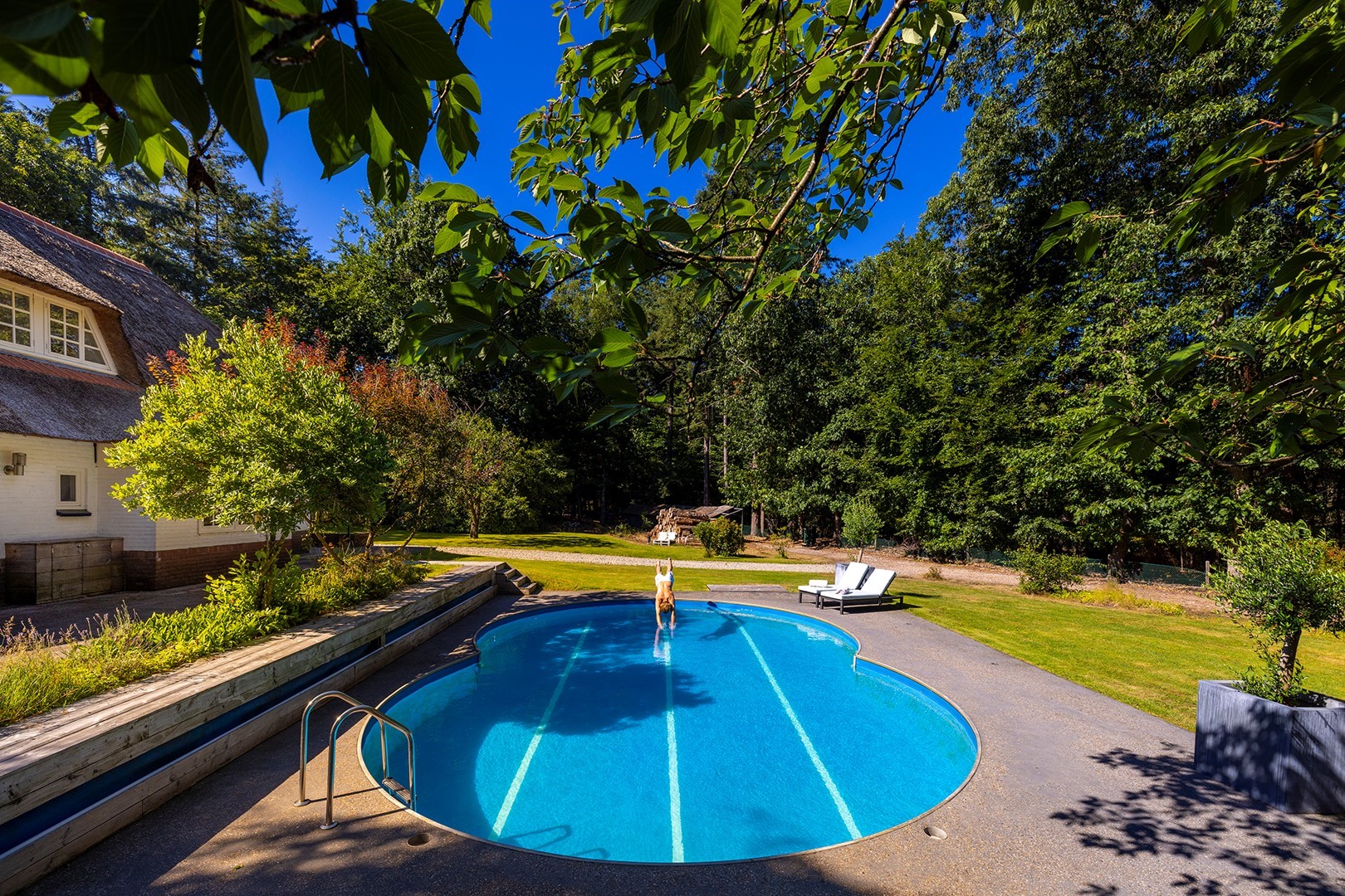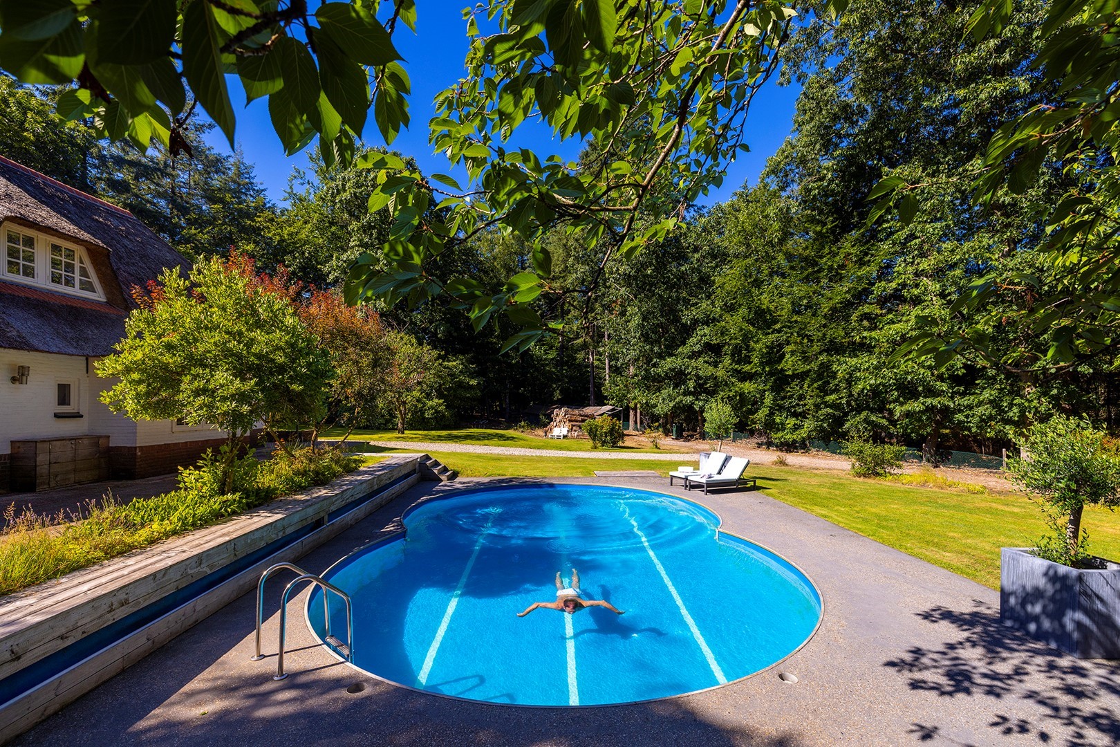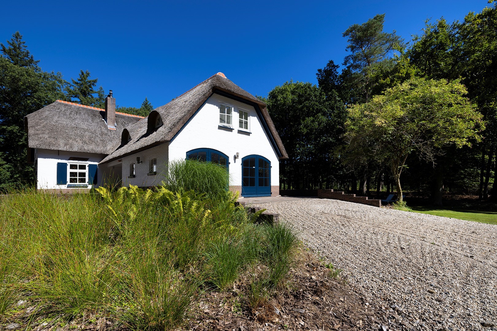 Midden in de natuur, via een verstillend pad met elektrische toegangspoort, bereikt u dit stijlvolle, rietgedekte landhuis “Boschhoeve”. Een veilige thuishaven vol rust en privacy… wakker worden in het bos, begeleid door het concert van vogels die alweer een nieuwe dag aankondigen. Het klinkt alsof u droomt, maar dit is het standaard ochtendritueel aan de Lichttorenweg 12, iedere dag opnieuw. Tijdens een wandeling over uw eigen perceel met bos en tuin van ruim 35.000 m² zult u absoluut een paradijselijke gevoel ervaren! Zelfs aan de achterzijde van uw perceel is een extra uitgang aan de Jachtlustweg. Van de morgen tot de avond, het gehele jaar door, laat deze omgeving u telkens weer het ultieme buitenleven ervaren.