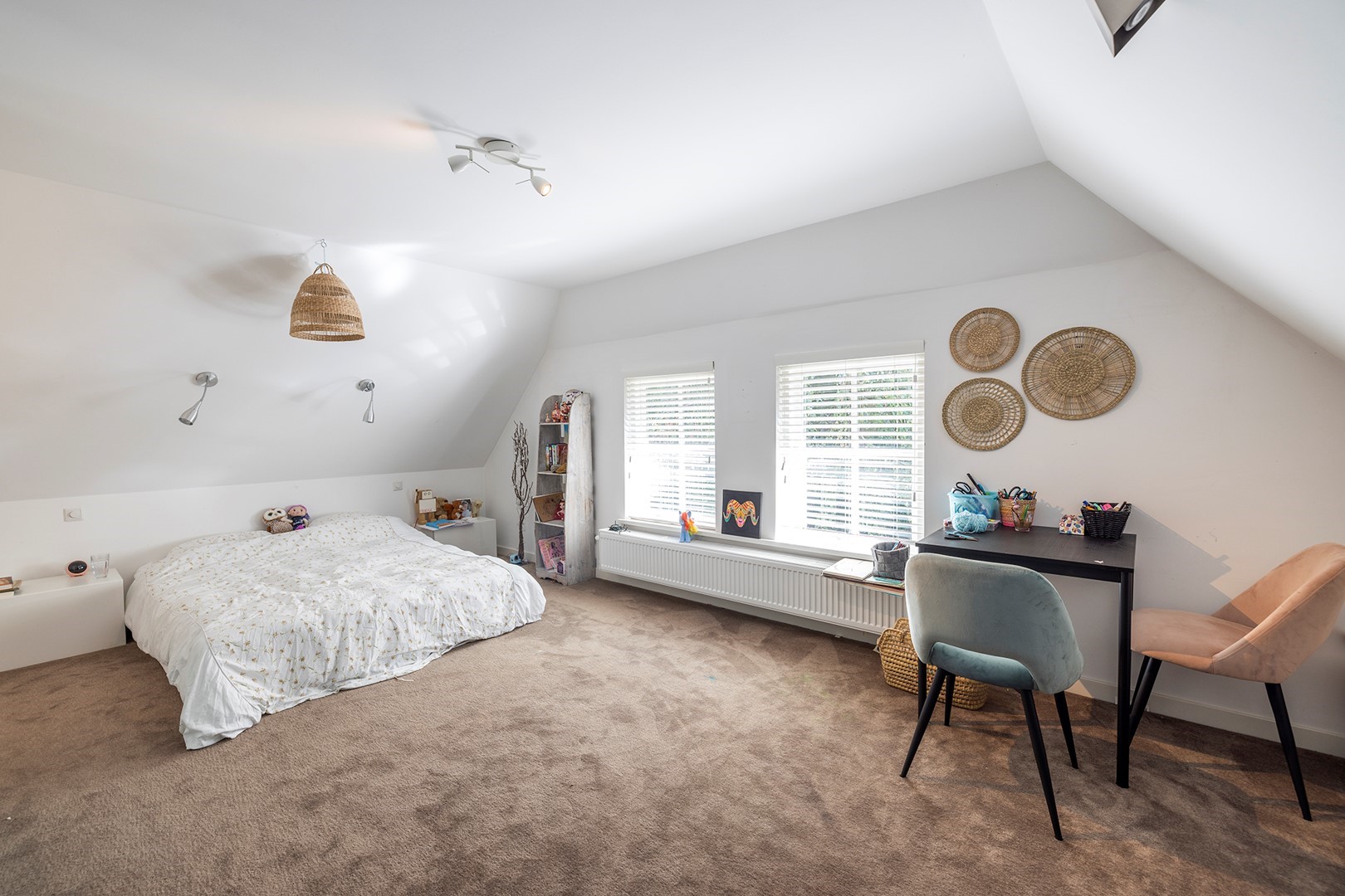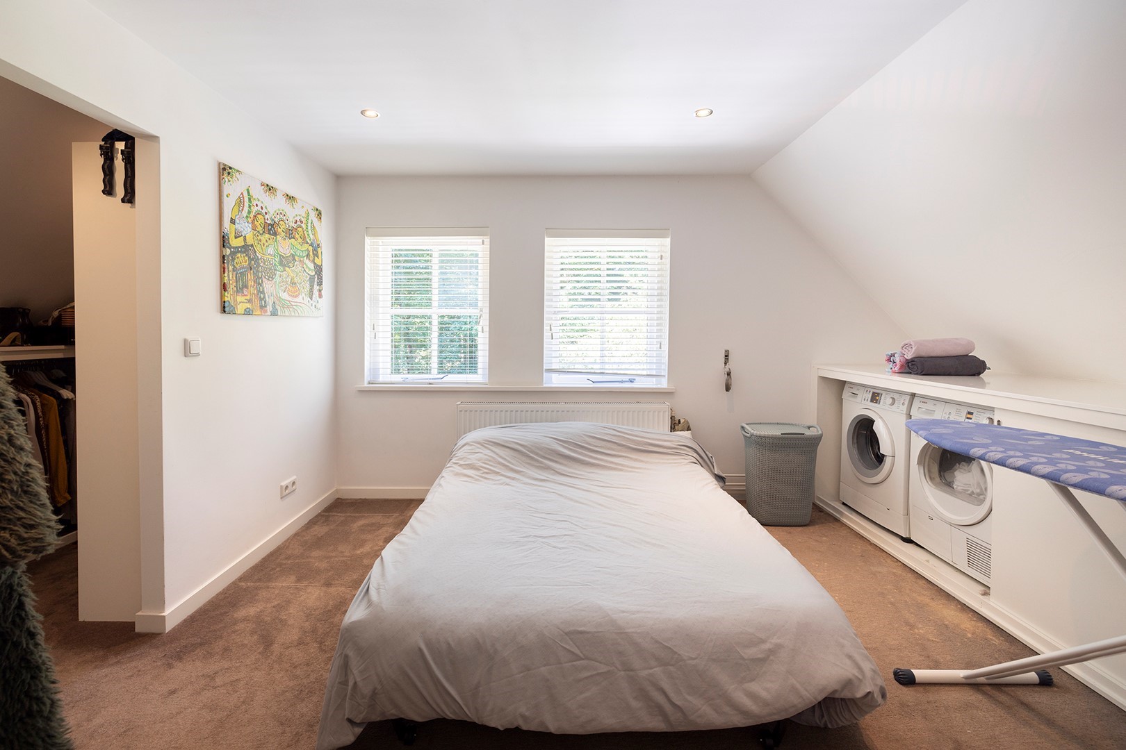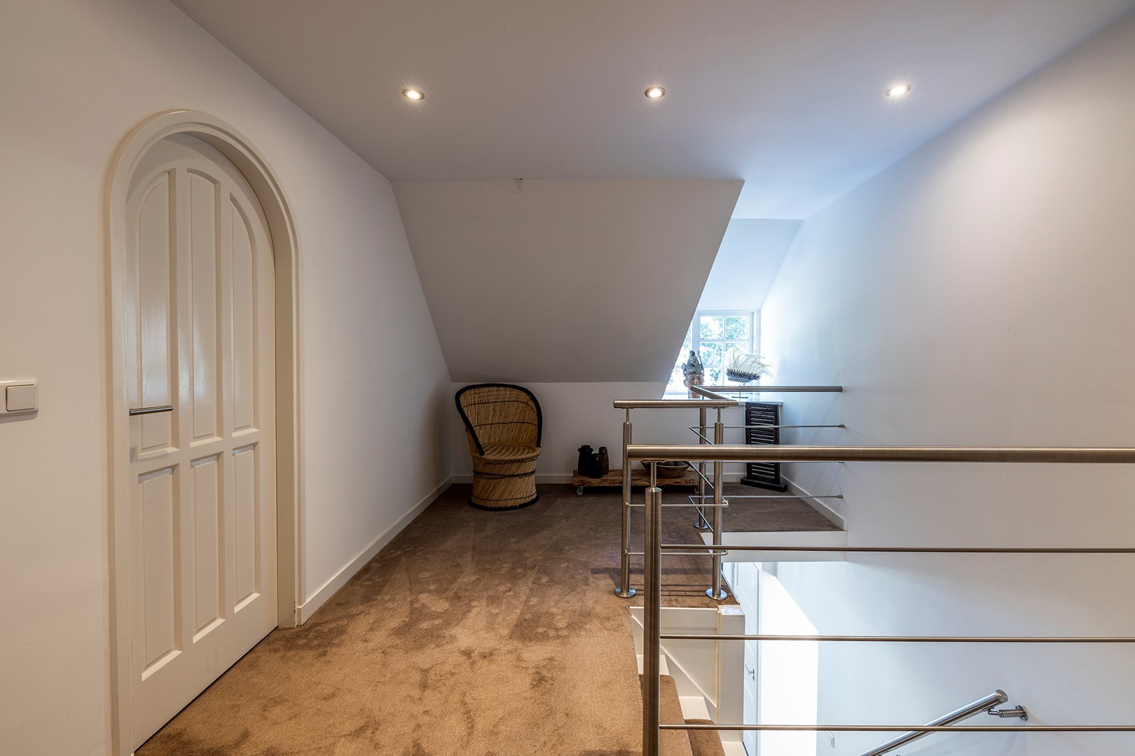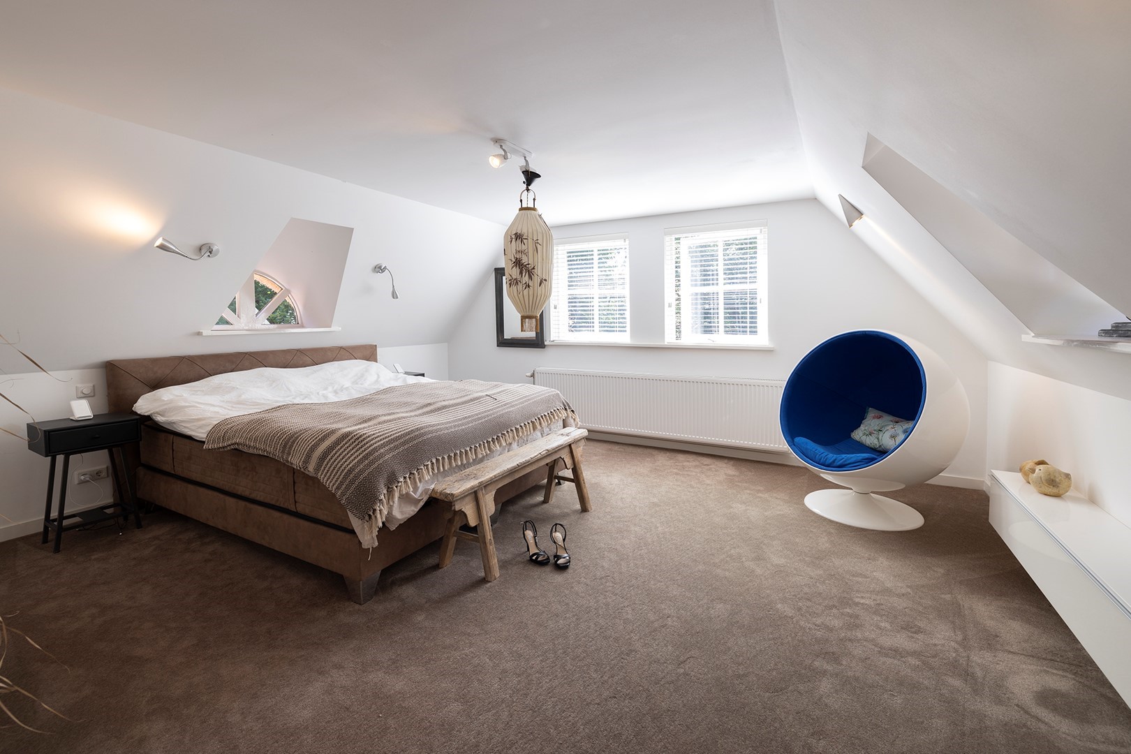 De master bedroom heeft royale ramen als ook aan beide zijden de authentieke stalraampjes. Veel licht en veel mogelijkheden om van het uitzicht te genieten! Op de overloop is er achter de schuifwanden veel opbergruimte.