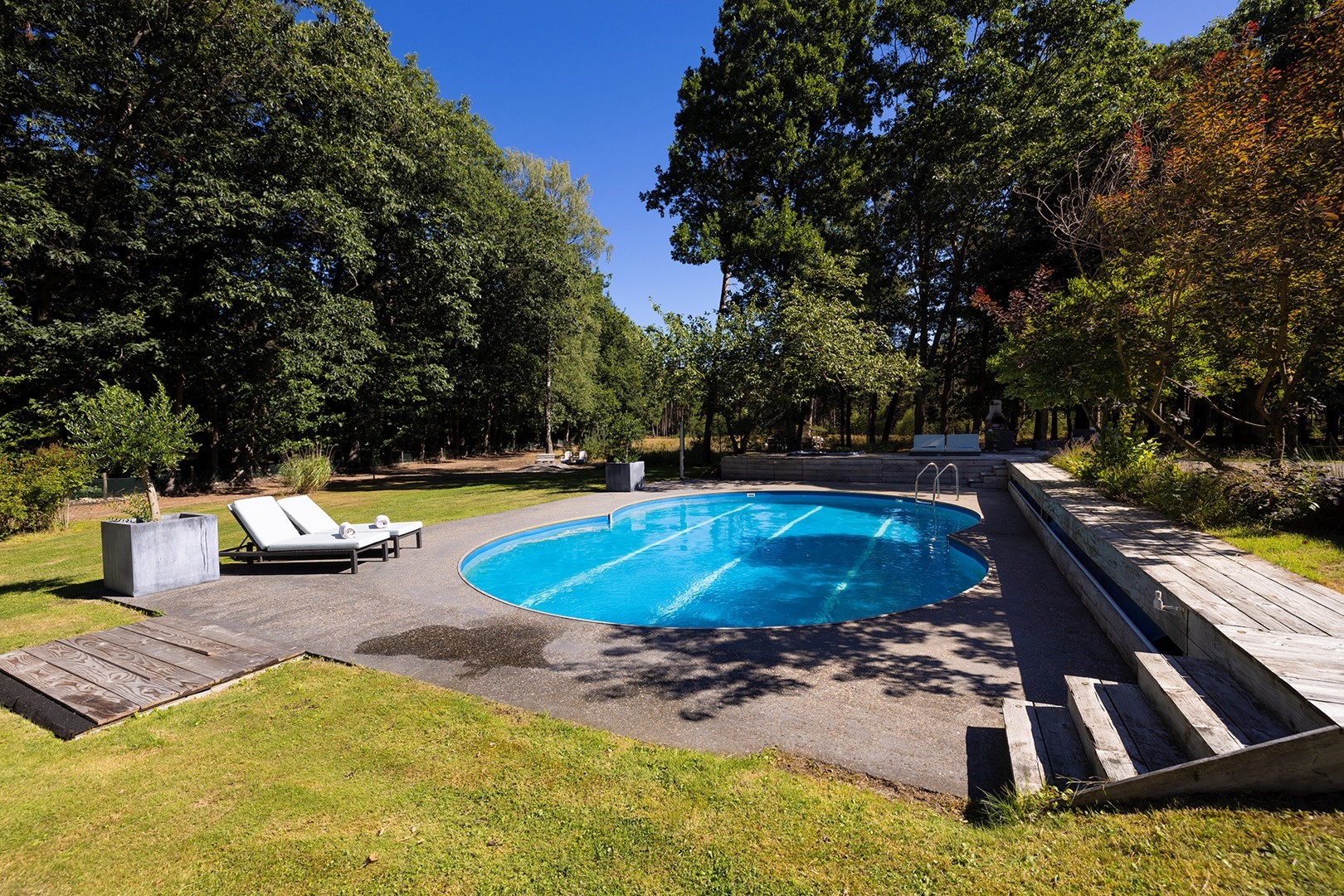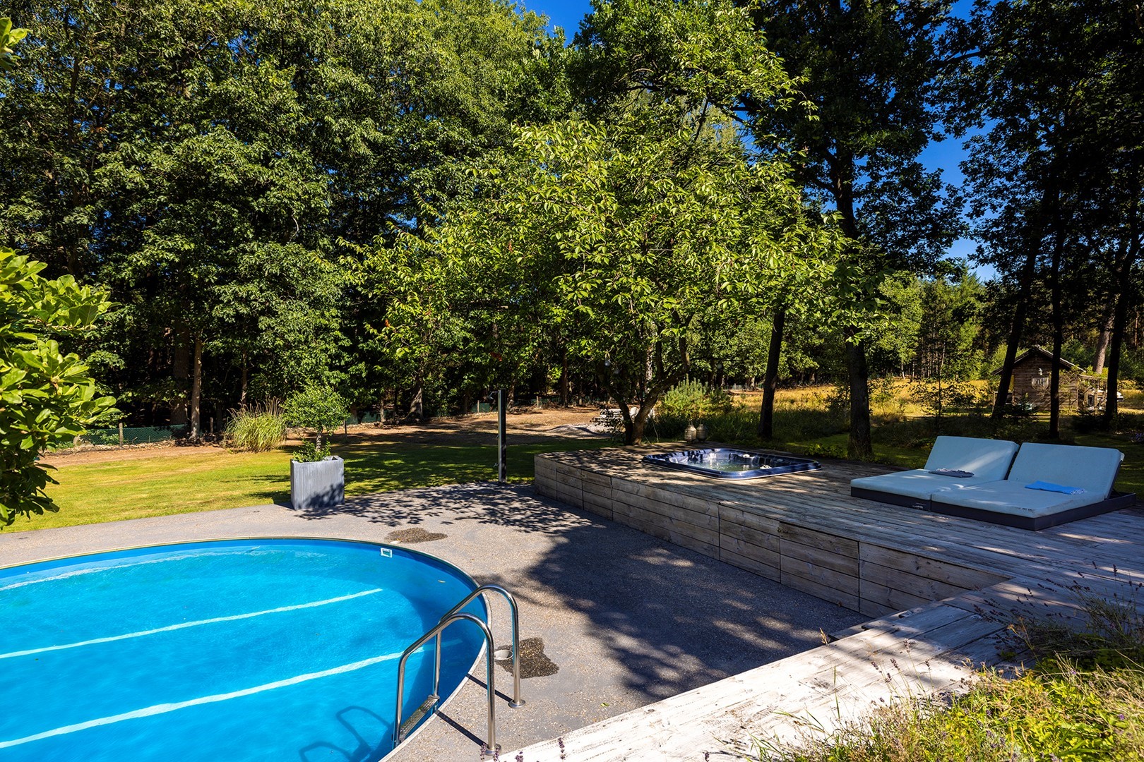 Als eyecatcher heeft de huidige eigenaar een buiten wellness laten aanleggen (2013) compleet met groot zwembad, jacuzzi, buitendouche, terras afgewerkt met vlonderplanken en met meerdere hoekjes om volop te kunnen genieten van deze luxe!